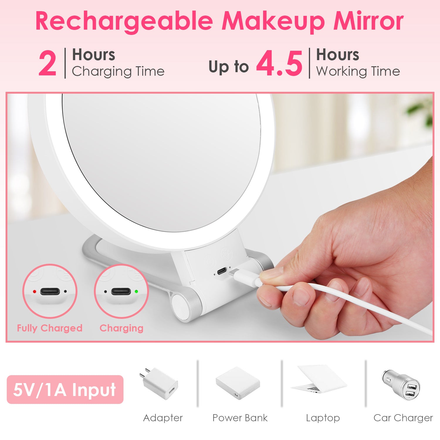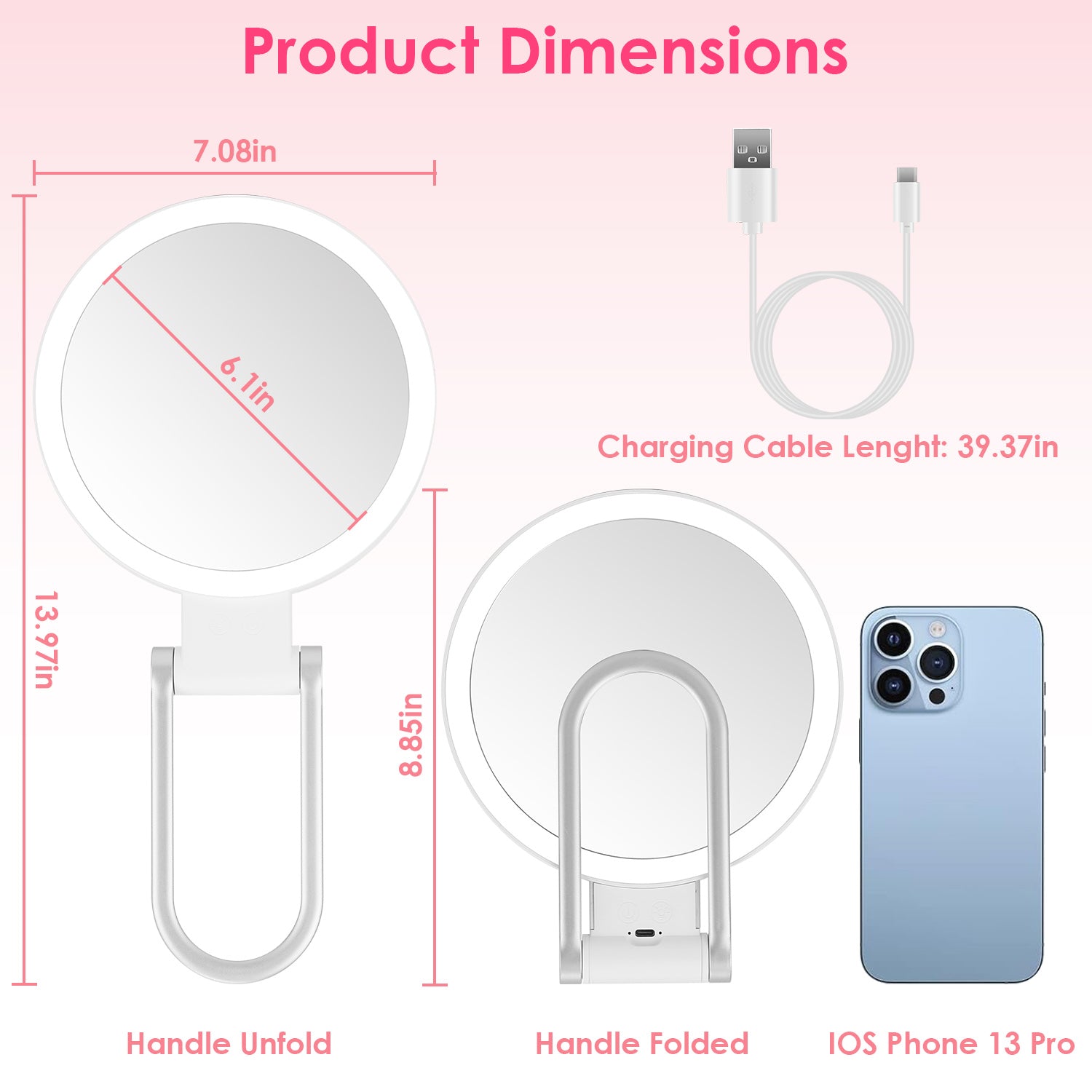 270° adjustable handle allows use as tabletop mirror, handheld mirror, or wall-mounted mirror