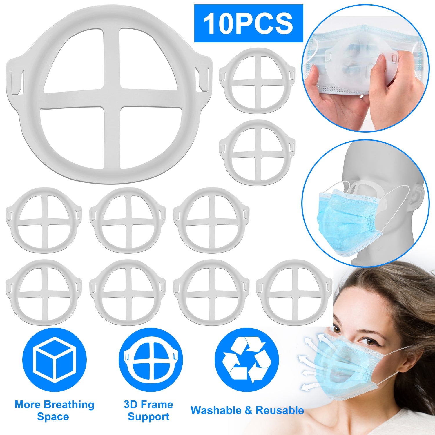 Enhance your mask-wearing experience with this 3D mask bracket, designed to create more breathing space and protect your face. This bracket reduces friction between the mask and your skin, allowing for better comfort and airflow. Ideal for maintaining makeup and preventing your mask from sticking to your face, it's perfect for all types of masks and suitable for both teenagers and adults. Reusable and easy to clean, this bracket is an essential accessory for anyone looking to make wearing masks more comfortable.