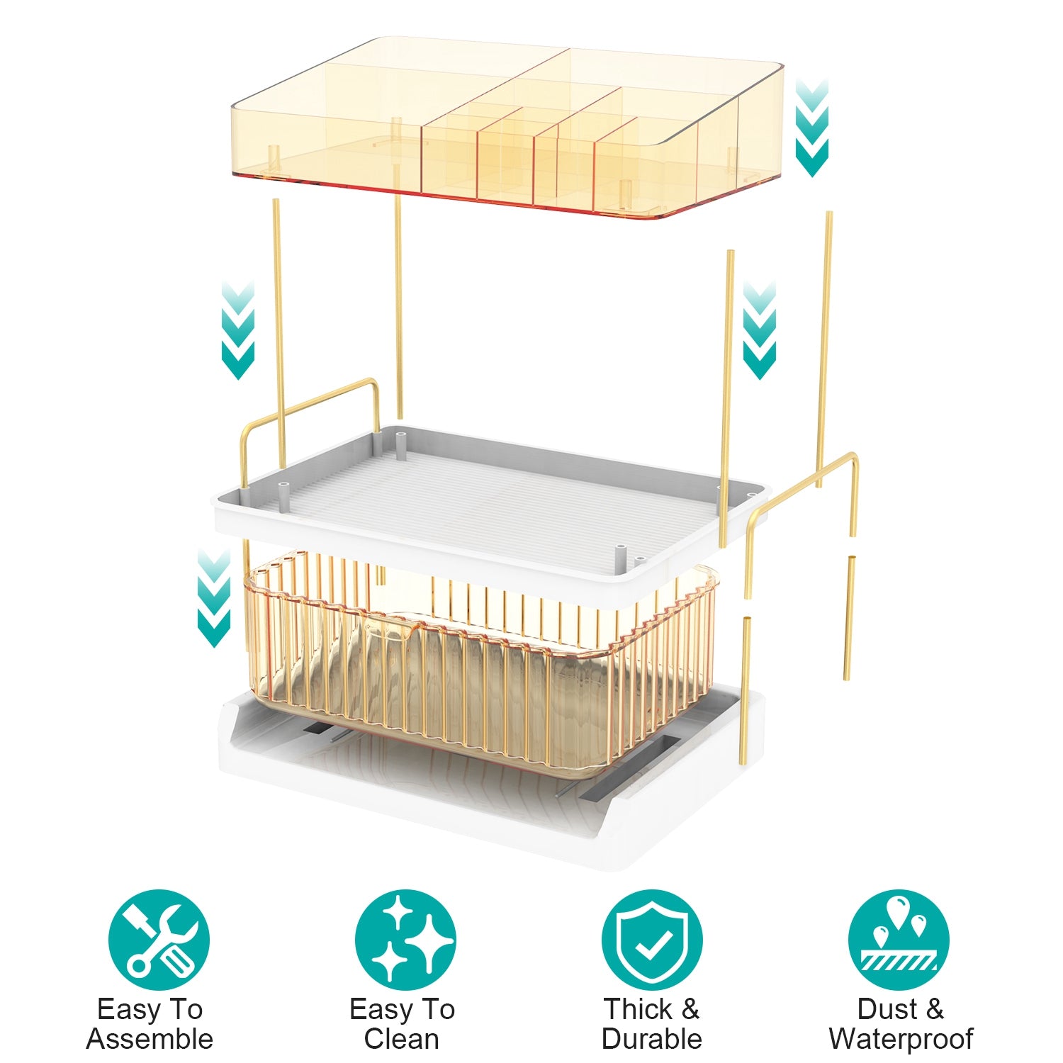 - Luxury Aesthetics: Gold and clear/champagne color combination adds a sophisticated touch, elevating your vanity decor