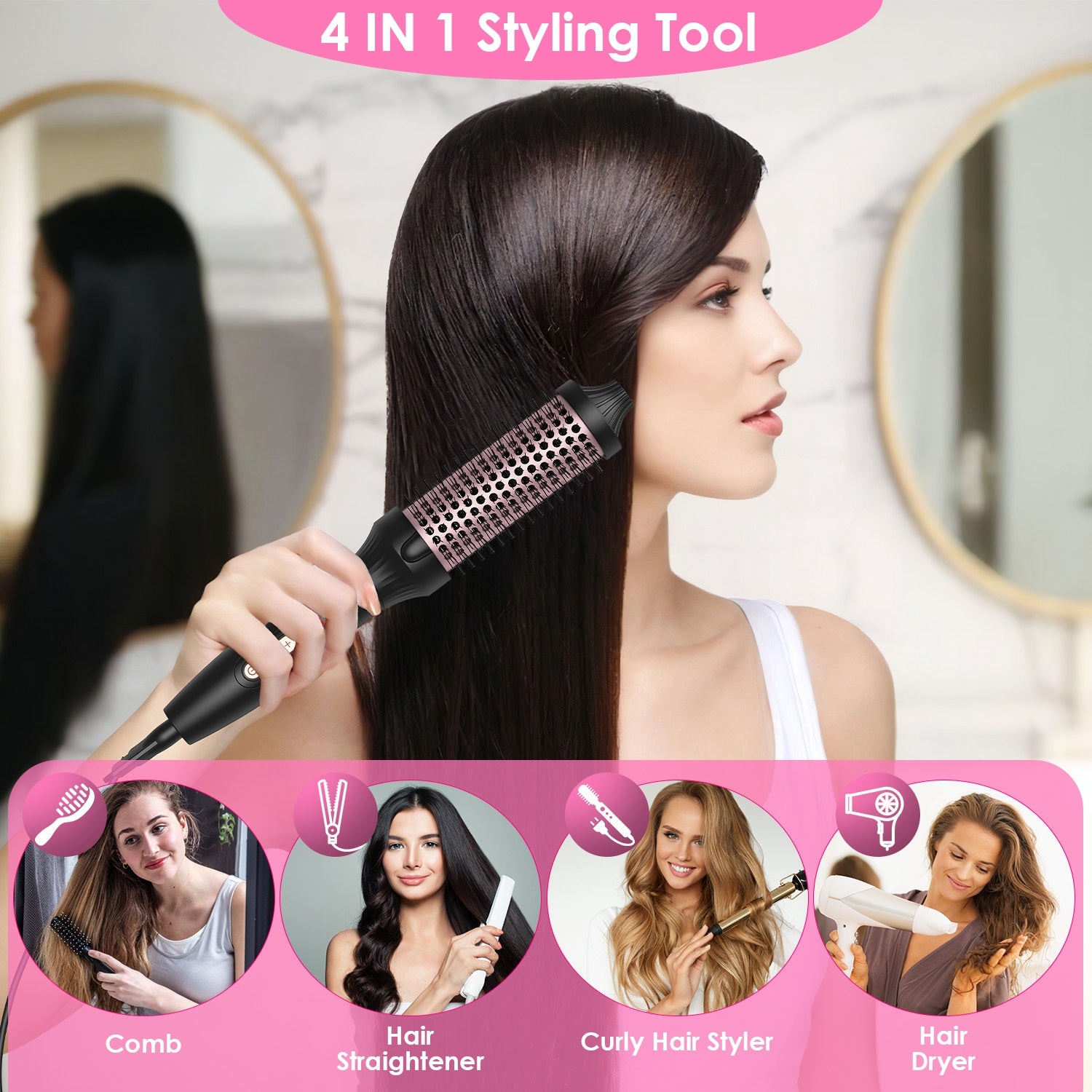 This 4-in-1 Hair Styler is perfect for streamlining your styling routine, offering multiple features in one tool. Whether you're creating sleek straight styles or soft curls, this easy-to-use, customizable styling brush helps you achieve beautiful, shiny hair every time.