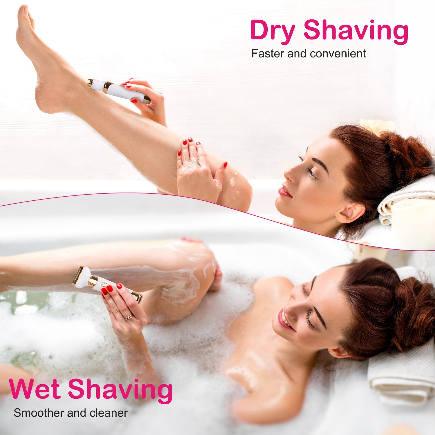 - Body Hair Shaver for arms, legs, underarms, and bikini area.