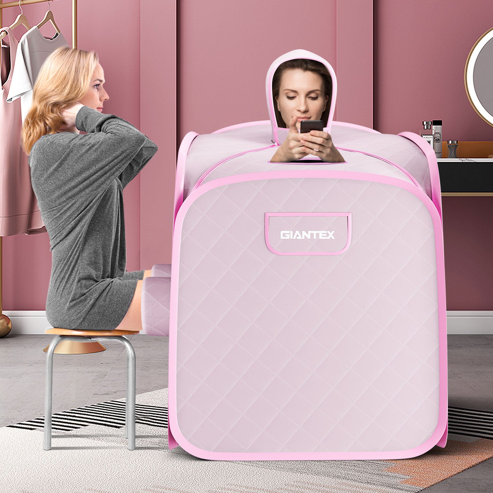 800W 2 Person Portable Steam Sauna Tent SPA with Hat Side Holes 3L Steamer-Pink