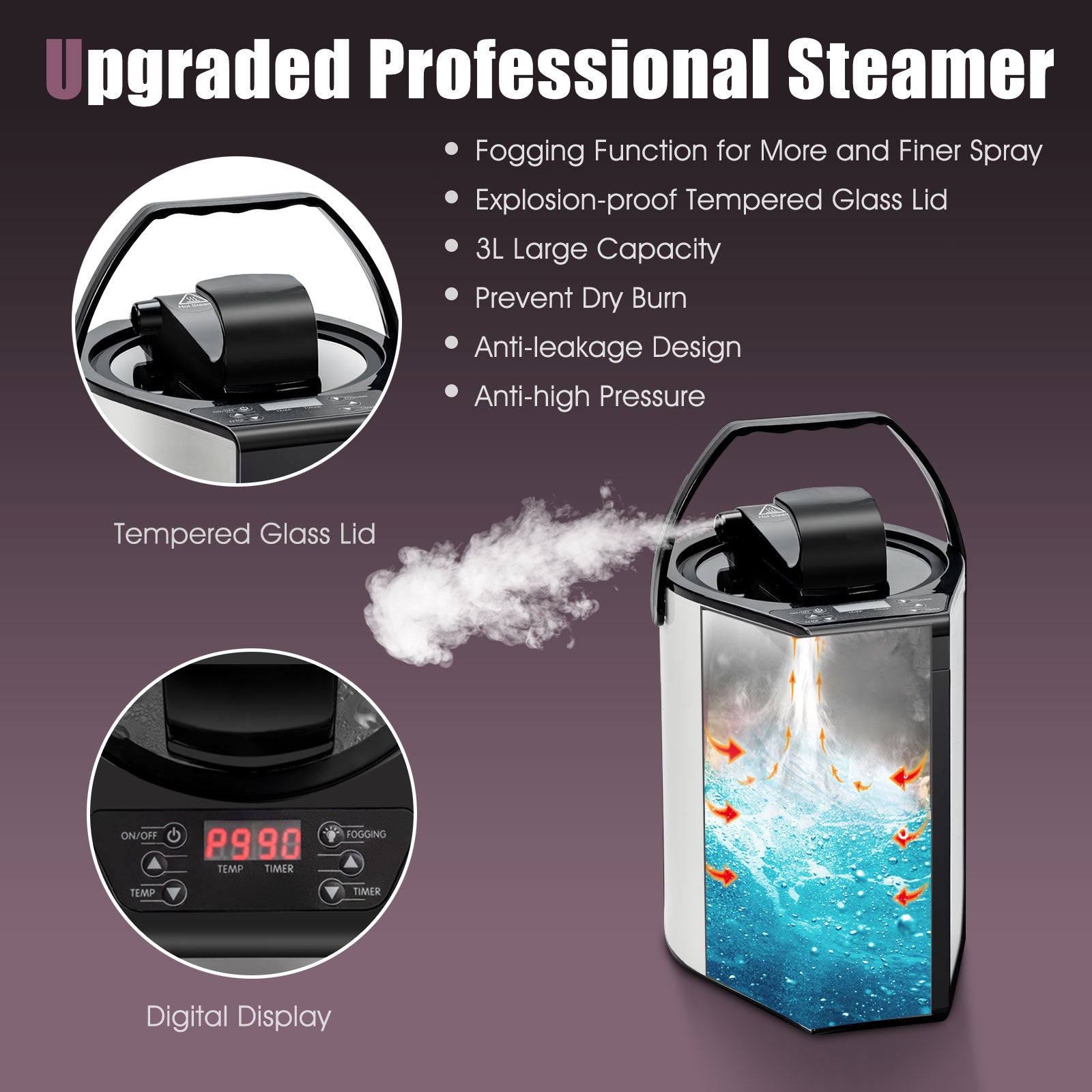 ● Strong power of 800W guarantees the fast heating effect ● 9 levels temperature adjustments and 9 levels timer for meeting different needs ● 3L stainless steel steamer with atomizing function to release finer and more spray ● Steamer has an explosion-proof tempered glass lid and automatic power-off protection ● Waterproof fabric is easy to wipe and dry ● Double-side zipper allows entry and exit without difficulty ● Folding chair is suitable for camping picnic fishing and other outdoor activities ● Herbal box can be filled with herbs or essential oils to improve relaxation ● Foot massage roller provides you with professional massage enjoyment ● Absorbent mat reduces the accumulation of water on the ground ● The front pocket is convenient for placing the remote control or phone ● Pop-up sauna tent design greatly simplifies the installation process ● Fast folding design and carrying bag make it easy to carry and store ● Perfect for long-term home usage saving your money to the beauty salon shop