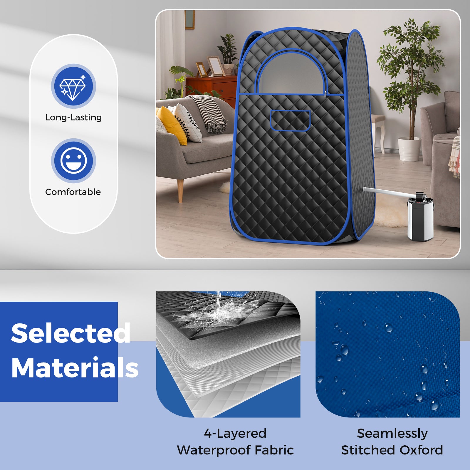 Full-Body Personal Sauna Tent with 1000W 3L Steam Generator for Home Spa Relaxation-Black