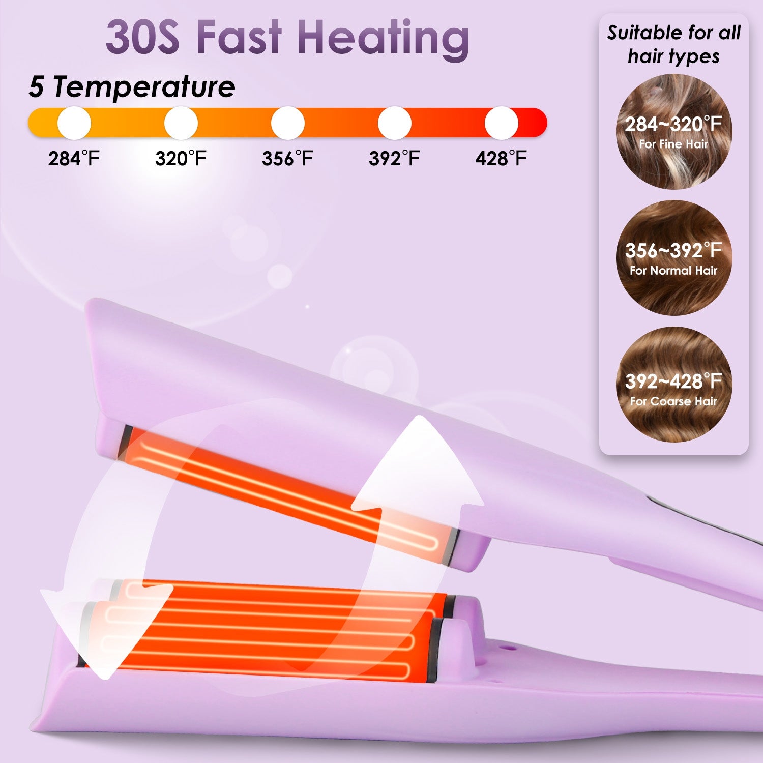 Achieve effortless, salon-worthy beach waves in minutes with our 1.41” S-Shaped Curling Waver. Featuring dual heating barrels and wider plates for even heat distribution, this styling tool delivers consistent, long-lasting curls with a simple clamp-and-release motion—no styling skills required. With fast heating, adjustable temperatures, and advanced safety features, it’s designed to suit every hair type while protecting against heat damage and frizz. Whether at home or traveling, enjoy beautiful, bouncy waves anywhere you go.