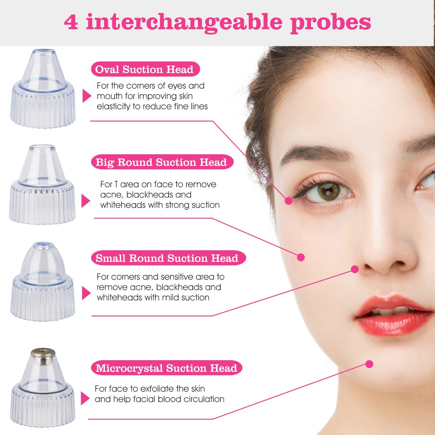 - Large Round Probe: Strong suction for removing acne, blackheads, and whiteheads from the T-zone.