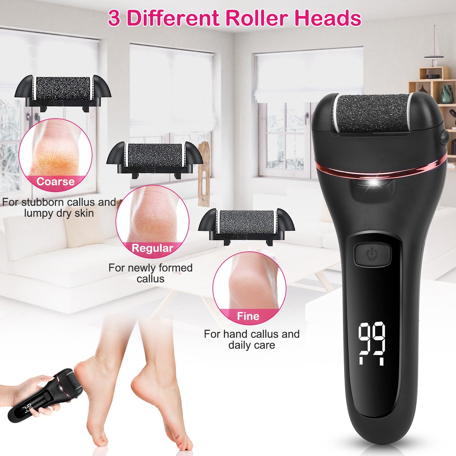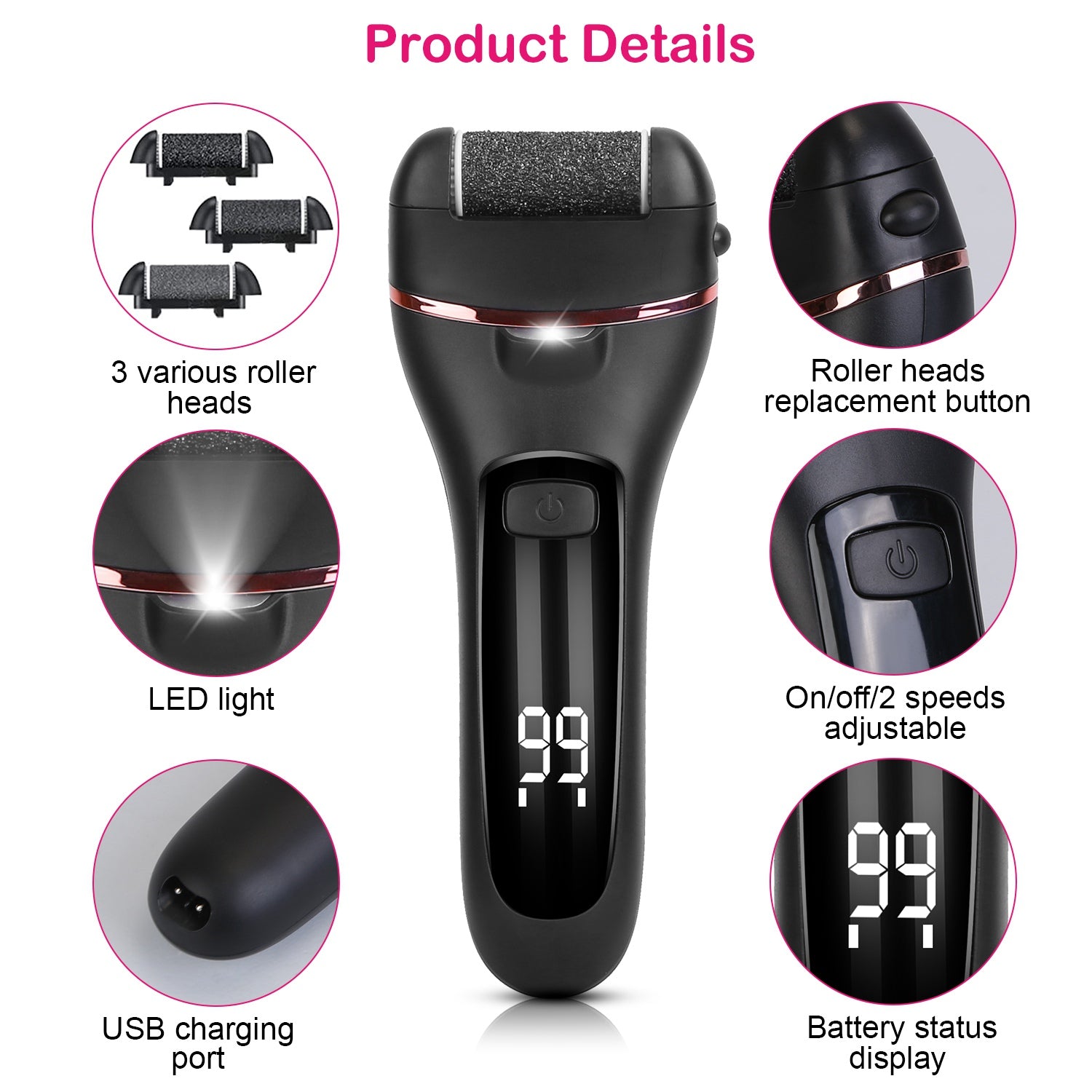 - USB Rechargeable & Long Battery Life: Fully charged, the electric callus remover lasts up to 120 minutes, with the battery status displayed on the screen to indicate when it’s time to recharge.