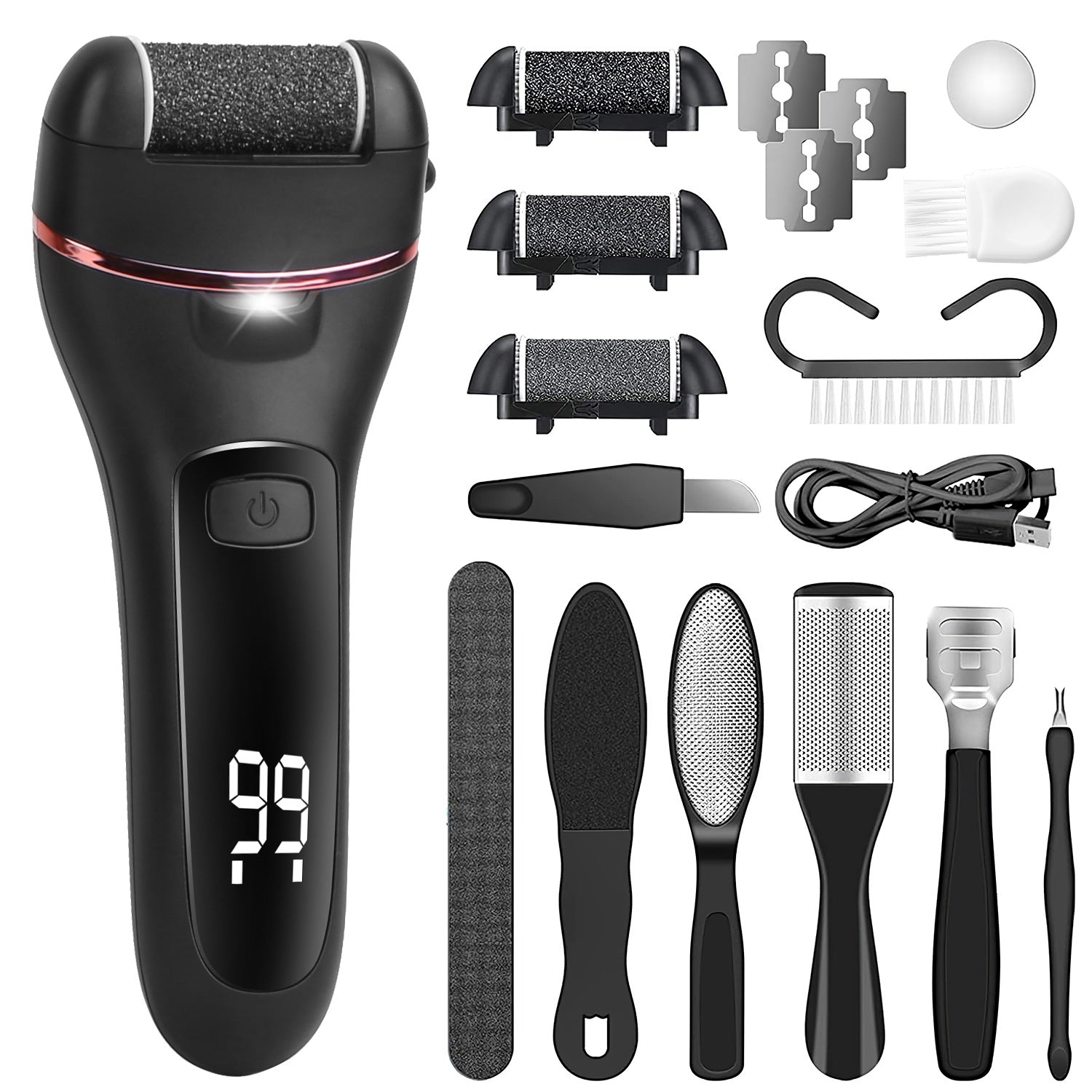 Achieve professional-quality pedicures in the comfort of your own home with our 18-in-1 Pedicure Kit. This all-in-one set includes everything you need to keep your feet smooth, healthy, and well-groomed without the high cost of salon visits. Whether you’re dealing with tough calluses, dry skin, or simply want to maintain soft feet, this kit has you covered. It features an electric callus remover with 3 interchangeable roller heads, offering multiple levels of exfoliation for personalized care. Complete with a USB rechargeable design, LED light, and a range of tools for trimming, scraping, and cleaning, this pedicure kit makes at-home foot care easy and effective.