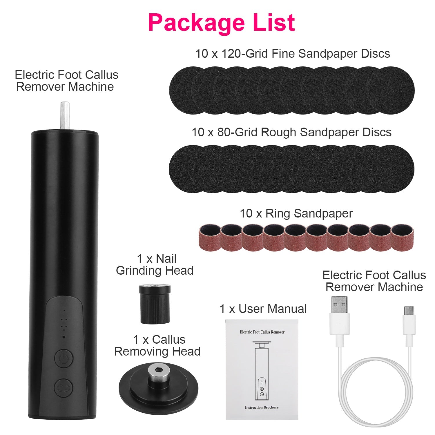 Replaceable Sandpapers: Comes with 10× 80-grit, 10× 120-grit discs, and 10× sanding rings to meet varied care needs