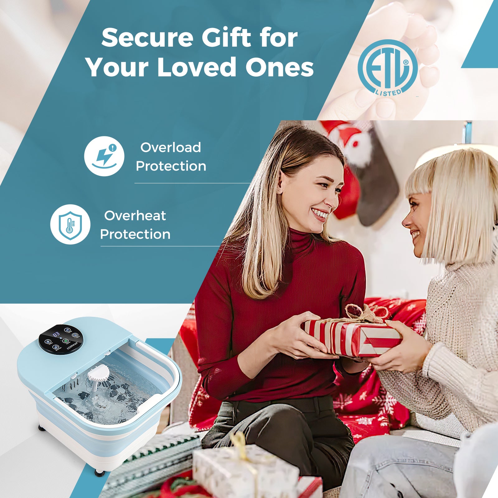 ● 95-118℉ temperature control for perfect relaxation● Automatic temperature maintenance after reaching the set temperature● Motorized massage balls fully massage from the toes to the heel● Thanks to the shower function the soothing jet stream energizes foot massage● The smart control panel features an LED display for clear temperature display● 0-60 minutes timer ensures auto shutoff for saving energy● Quick fold for easy storage in any narrow space● Comes with a carrying handle making movement more convenient● The massage panel is easy to remove for cleanup● Accelerate the heating process with the detachable lid● Guide you to add the proper amount of water through the clear fill line● Equipped with anti-slip foot pads to protect the floor● ETL certification overload protection and overheat protection for safety