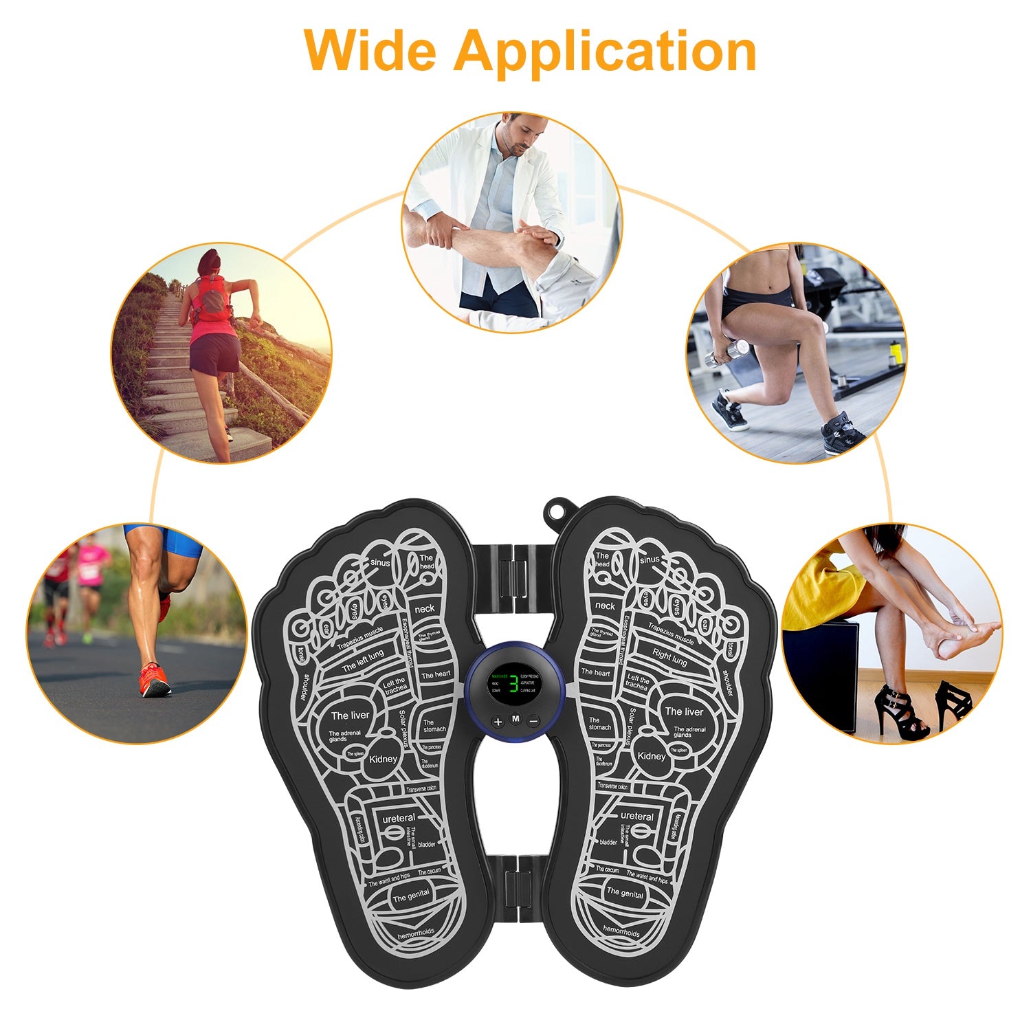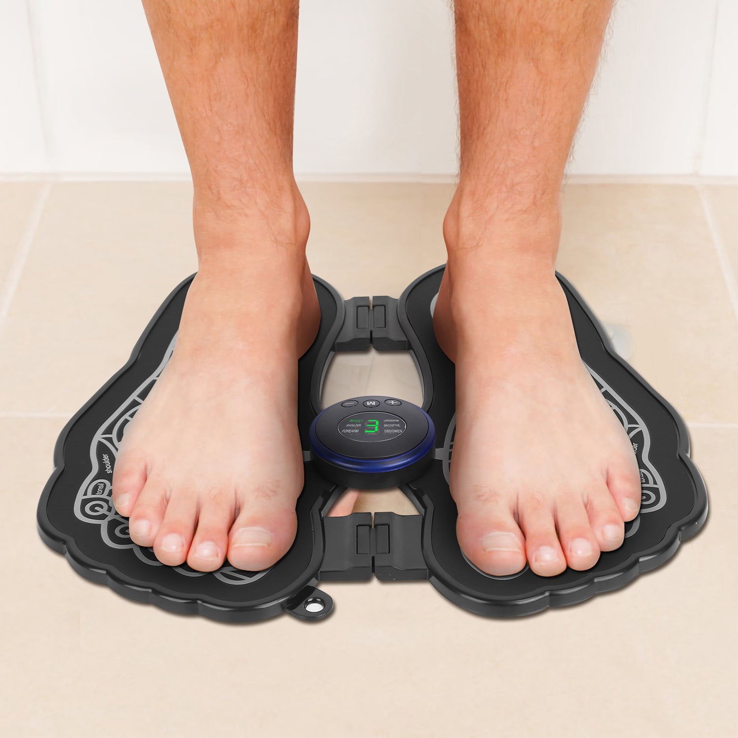 Our Foot Massager uses advanced low-frequency pulse technology (EMS) to provide soothing relief to your feet, ankles, and muscles. Designed to promote better blood circulation, alleviate muscle tension, and reduce fatigue, it helps to relax your legs and feet after a long day. With customizable settings and an automatic shut-off feature, this massager delivers a convenient, effective, and relaxing treatment, whether you're at home or on the go.