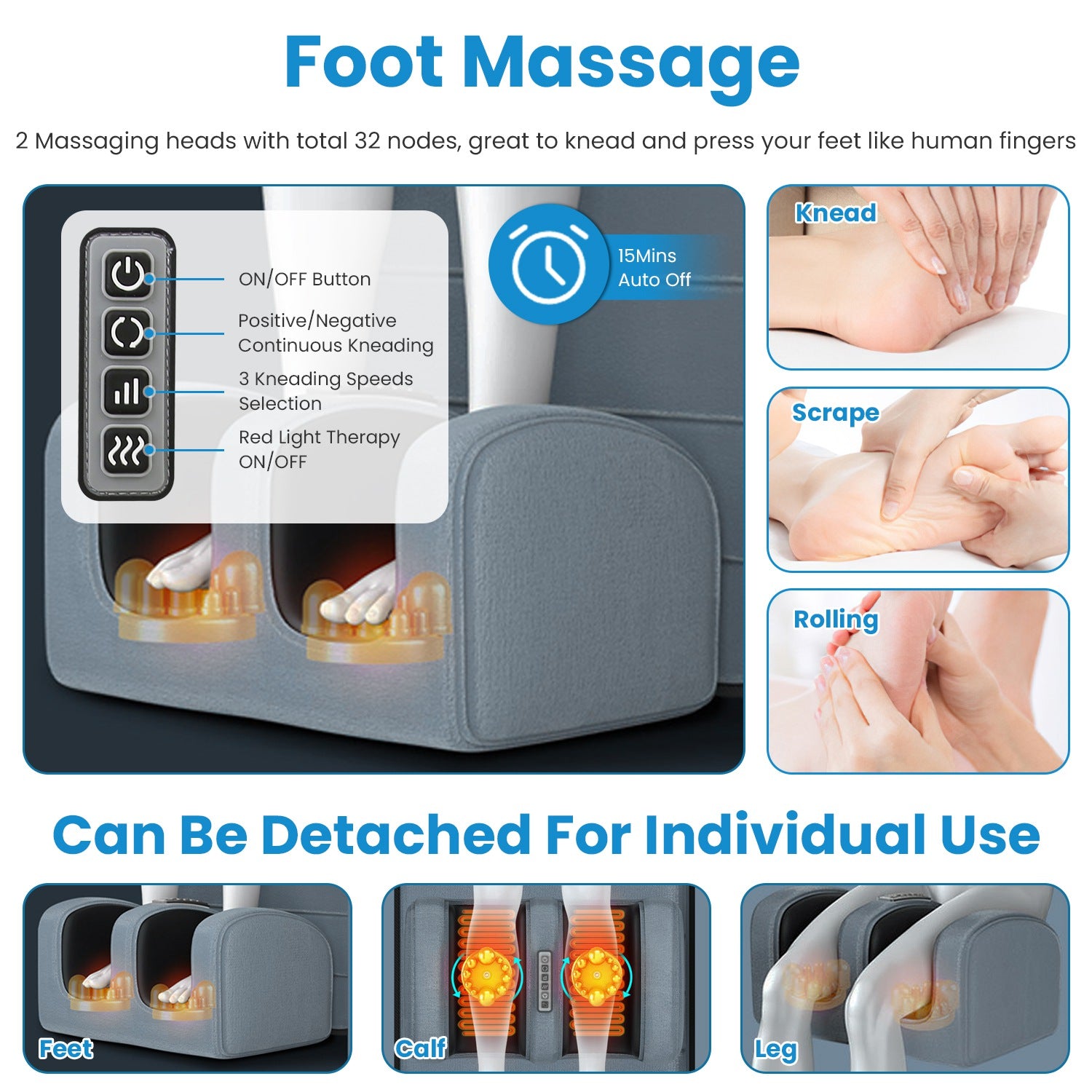 - Removable Foot Massager & Inflatable Lumbar Pillow: Foot massager with 2 kneading heads (32 nodes), adjustable speed, heating function, and the ability to knead calves, thighs, or arms. Inflatable lumbar pillow provides customizable support for the lower back.