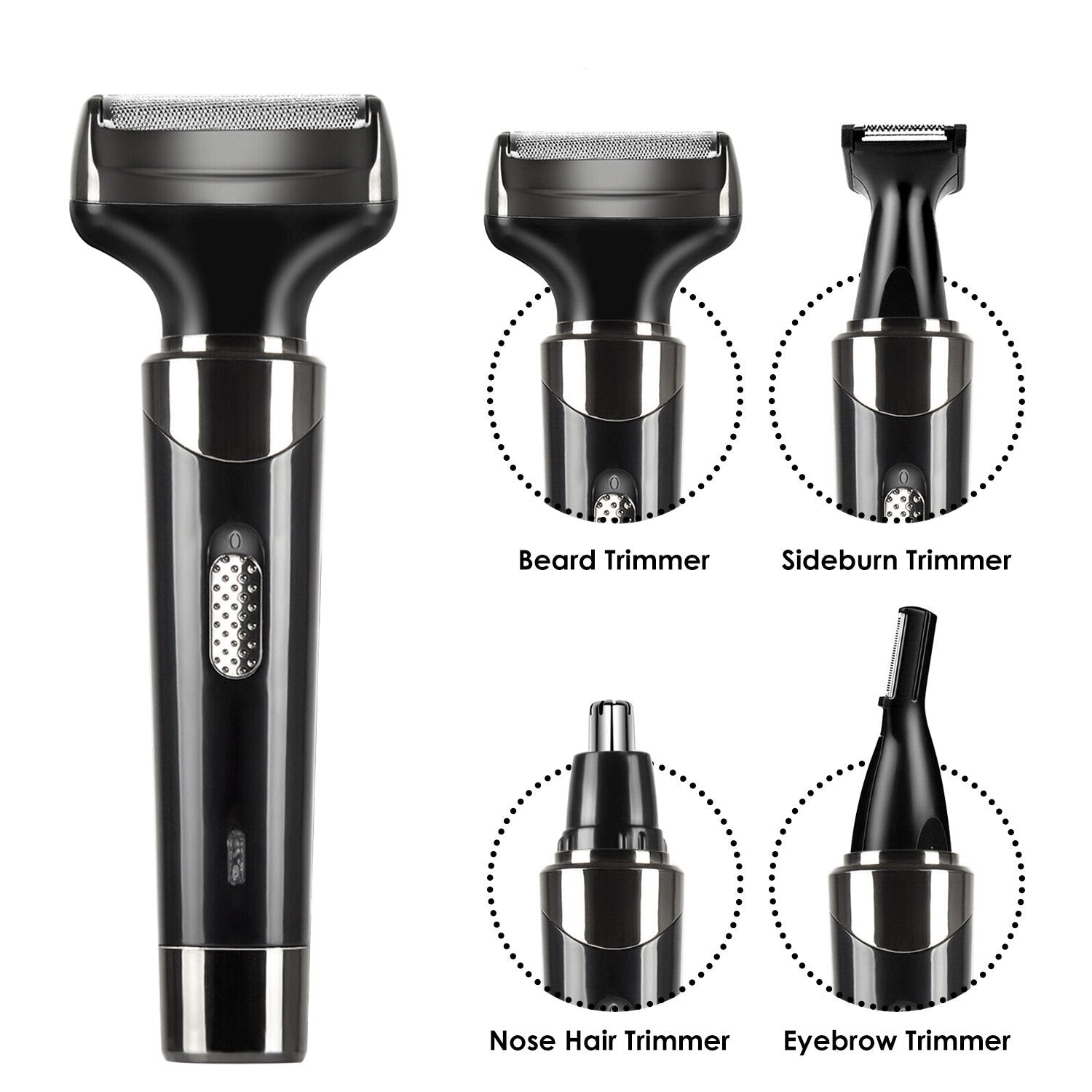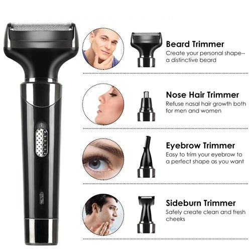 4-in-1 Electric Shaver: - Includes 4 interchangeable razor heads: