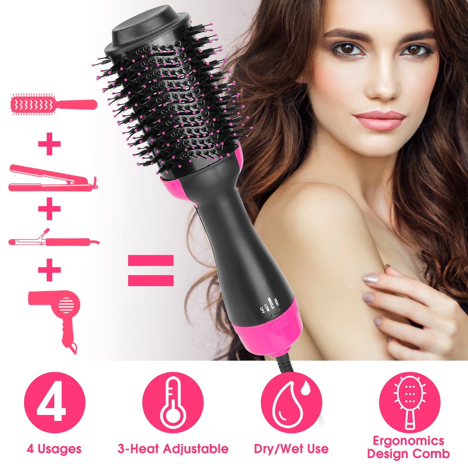 - Combines the functions of a dryer, curler, straightener, and comb.