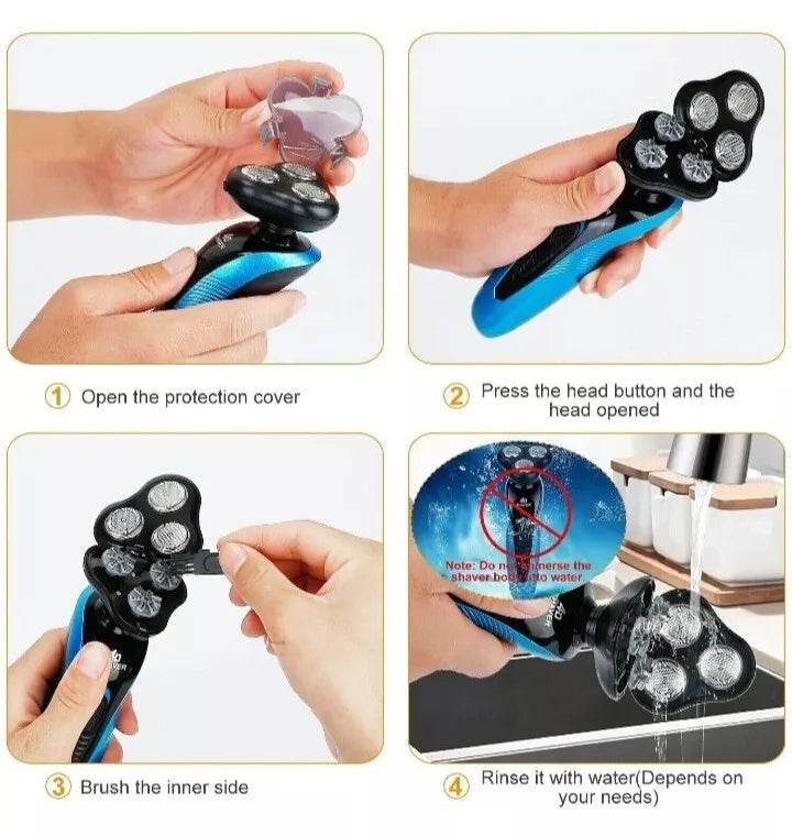 Say goodbye to the hassle of traditional razors that leave your face dry and require tedious cleaning. Our electric shaver provides a convenient, painless, and efficient shaving experience, suitable for both head and face shaving. With an IPX7 waterproof design, you can enjoy a wet or dry shave, even in the shower, using shaving foam or gel for a smoother, fresher result.