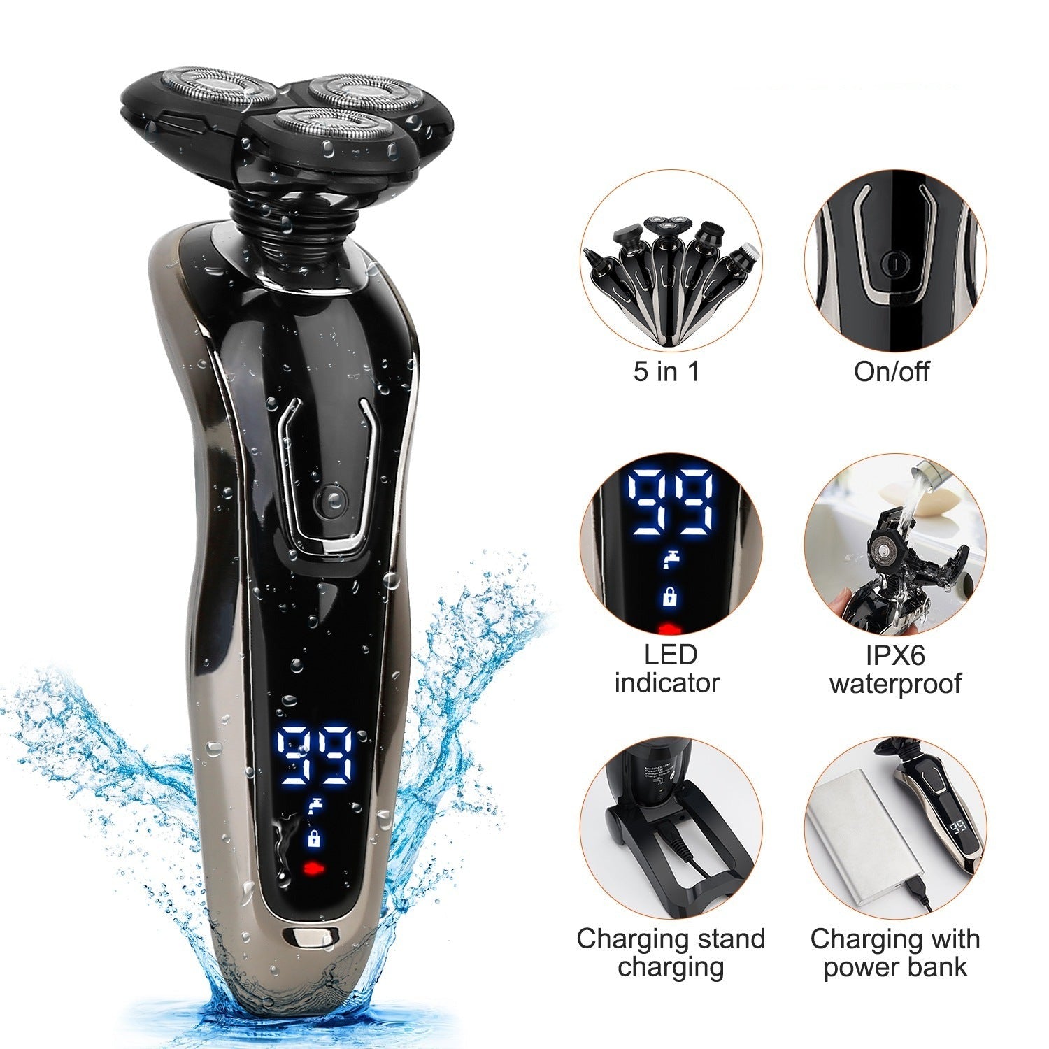 Multifunctional electric shaver with 5 interchangeable heads for versatile grooming