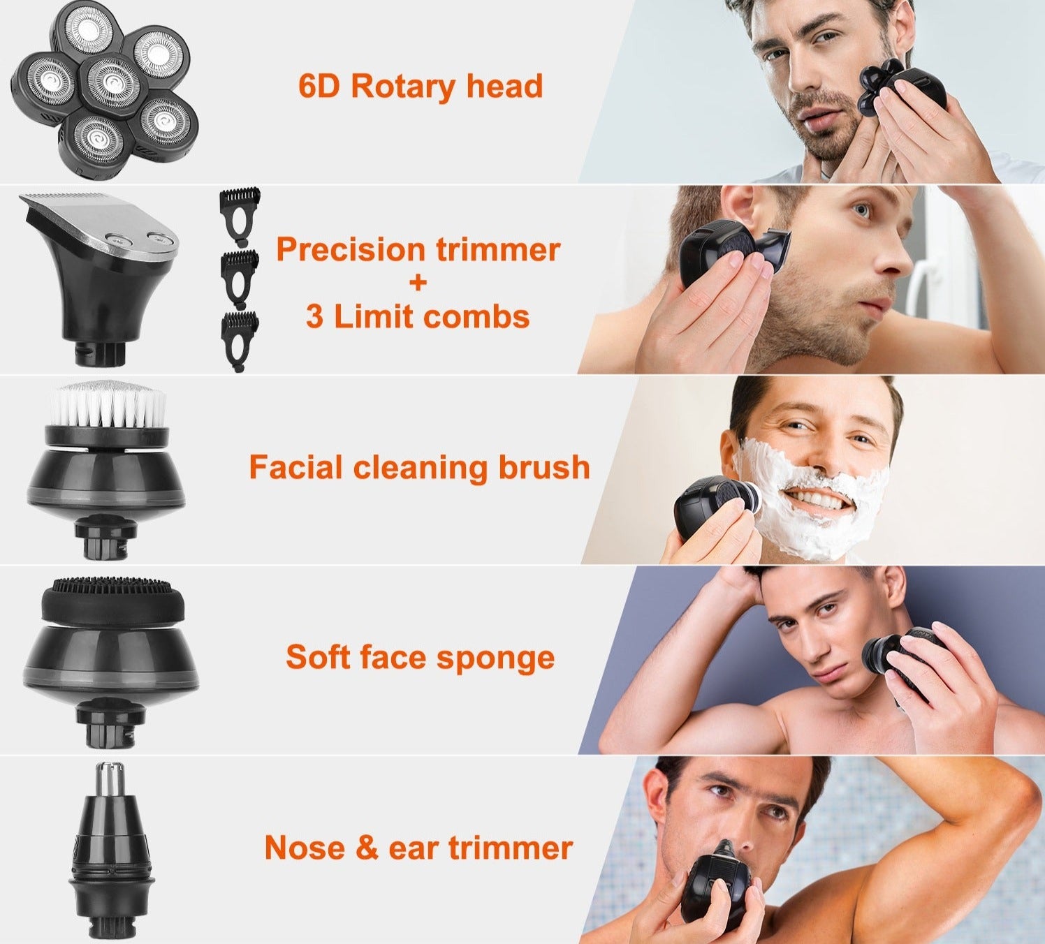 This Men's Electric Shaver is a versatile, multifunctional grooming tool designed to meet all your shaving and trimming needs. Equipped with 5 detachable heads and 3 limit combs of different sizes (3mm, 5mm, and 7mm), it allows for precise trimming and a smooth shave. The ergonomic design ensures a comfortable and easy-to-control shaving experience. Whether for daily use or special occasions, this electric shaver provides convenience and efficiency for your grooming routine.
