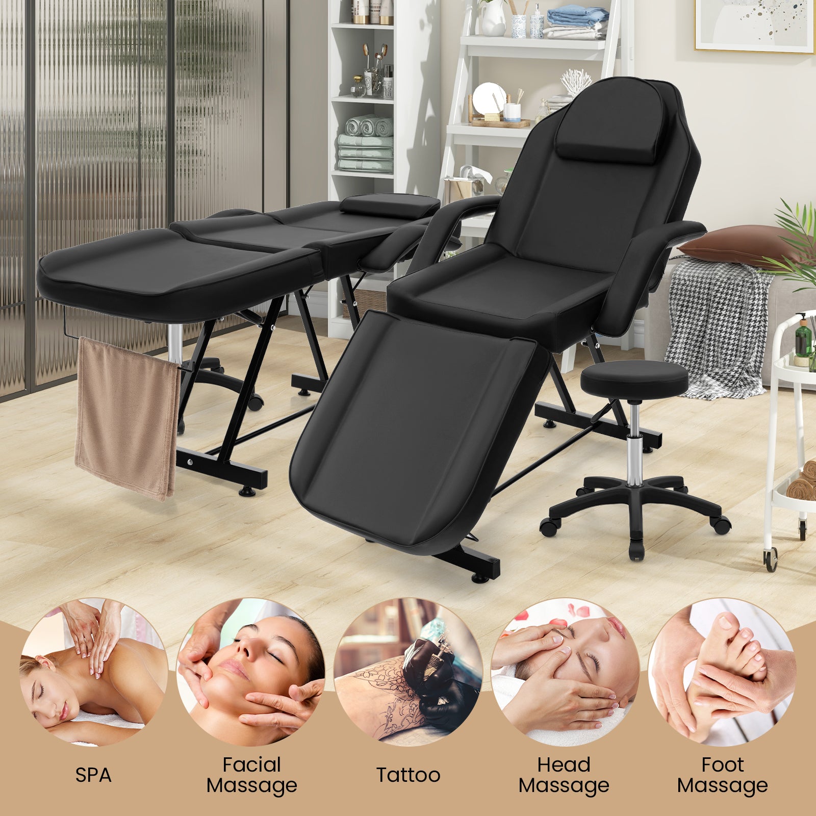 73 Inch Facial Chair Set with Removable Headrest Detachable Armrests and Towel Rack-Black