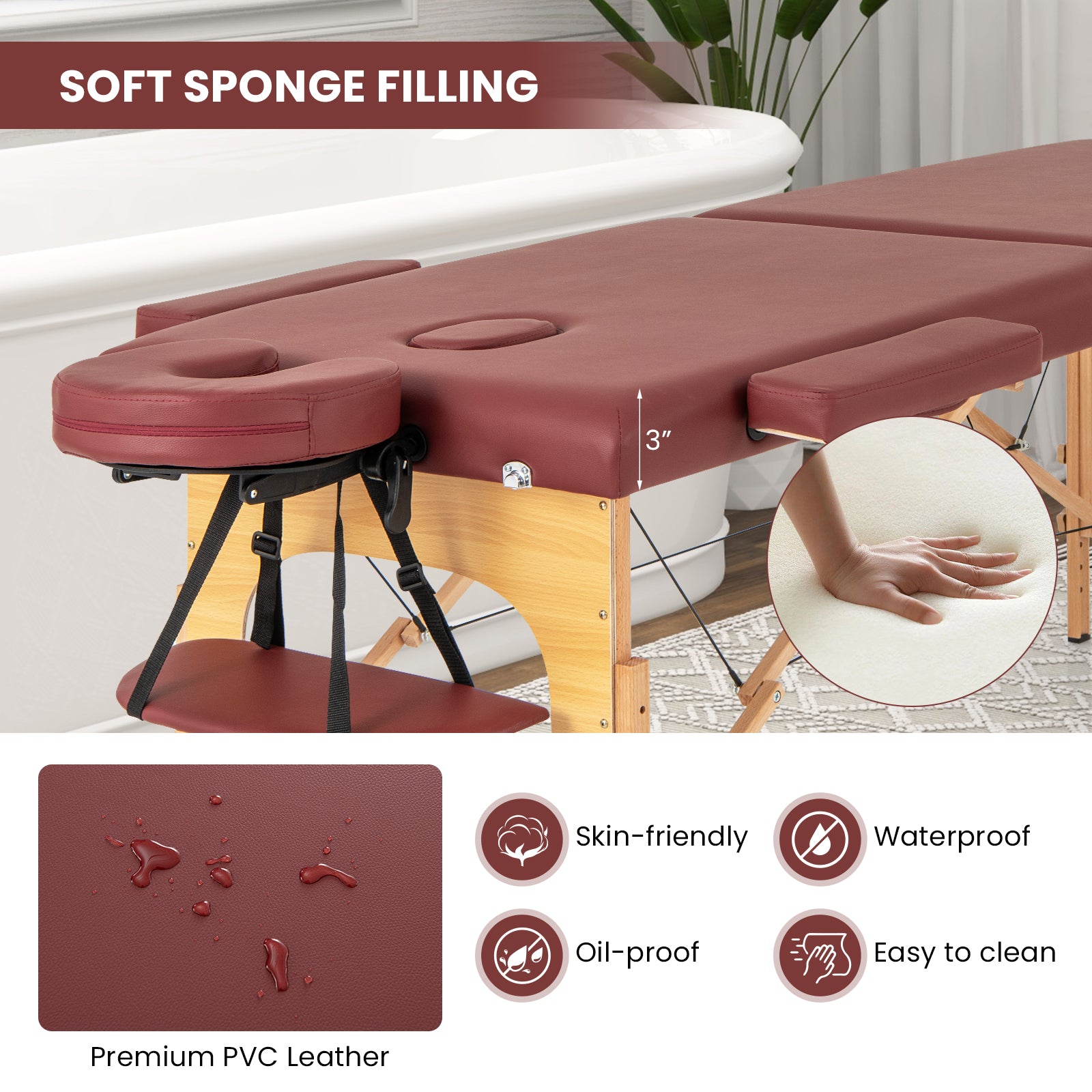 84 Inch Foldable Massage Table with Carrying Bag and Height Adjustable-Red