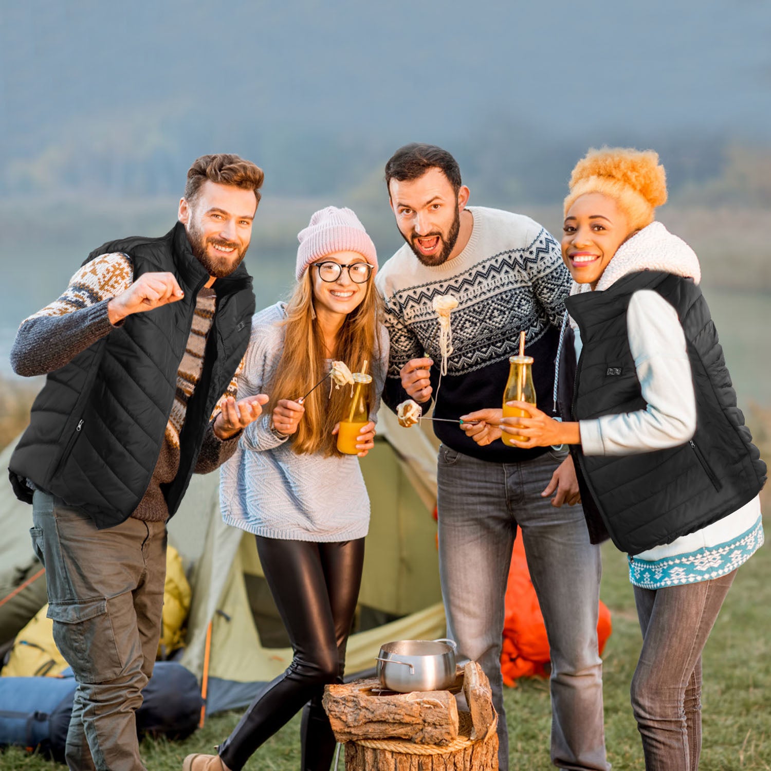 Stay warm and comfortable during cold weather with this heated vest featuring 11 heating panels strategically placed from the collar to the lower back for near full-body warmth. With three temperature settings and individual heating controls for the belly and back, you can customize your warmth easily. Powered by a USB-compatible power bank, this lightweight and efficient vest is perfect for outdoor activities or daily wear.