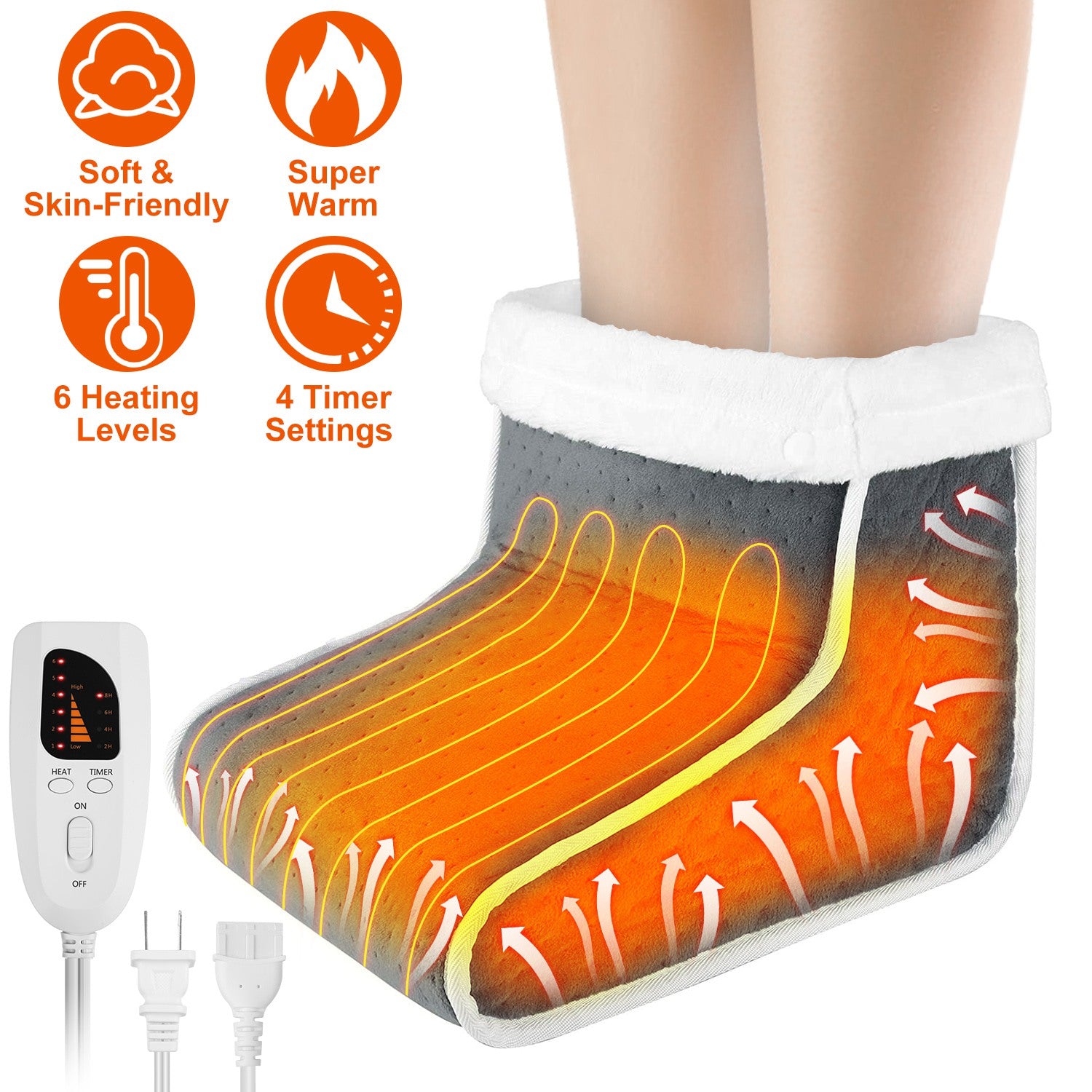 4 Timer Settings: Features 4 timer options (2/4/6/8 hours) to cater to your needs. With overheat protection, it automatically shuts down at 60℃/140℉ to prevent burns and fire accidents.