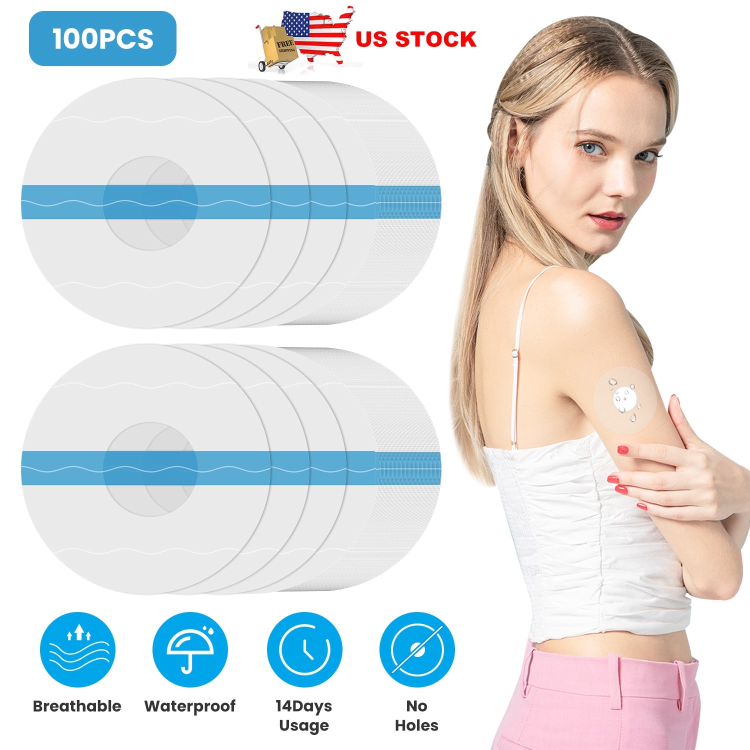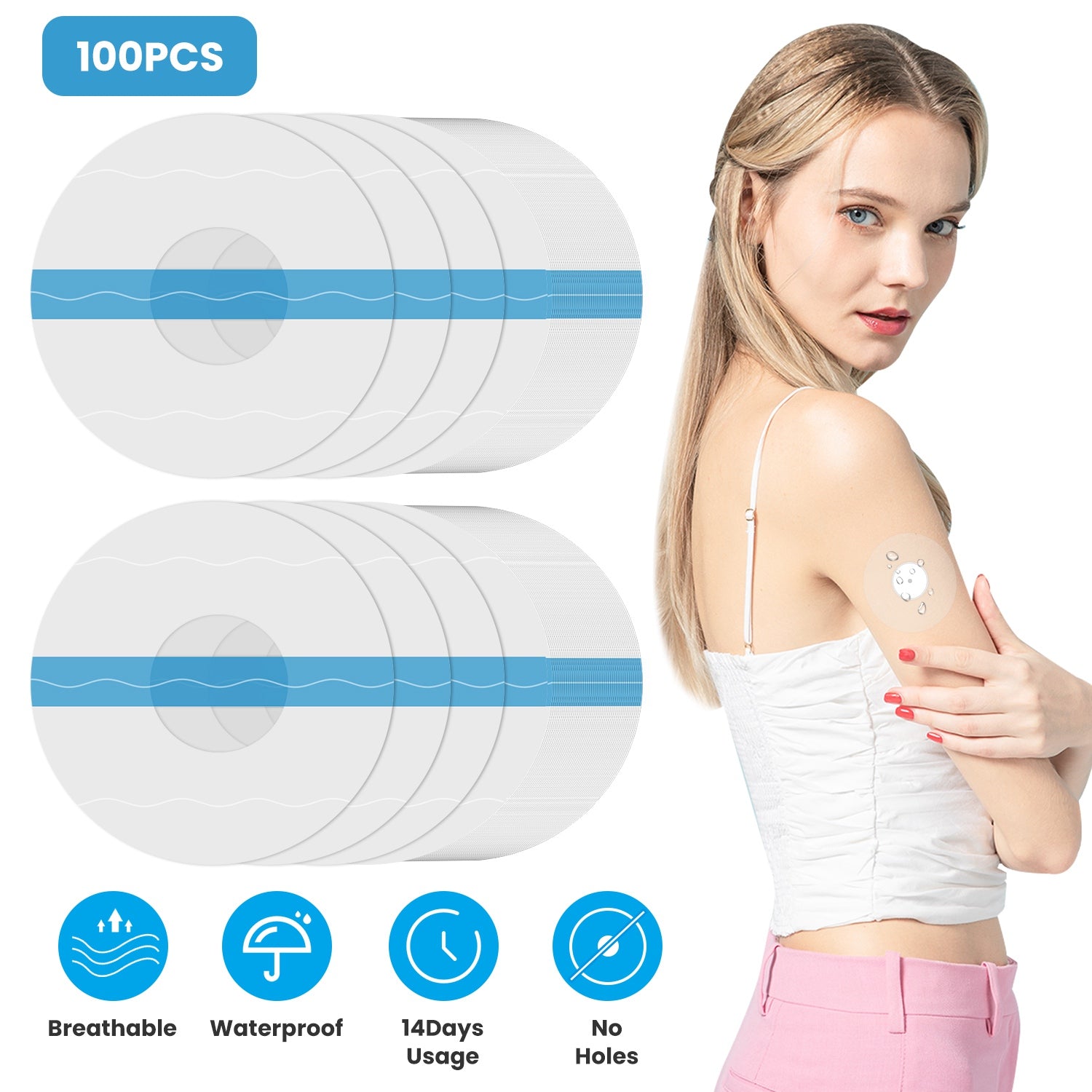 100Pcs Sensor Covers for Libre Waterproof Sweatproof Strong Stick Transparent Invisible Adhesive Patches No Glue Hole On The Center Long Lasting Tape