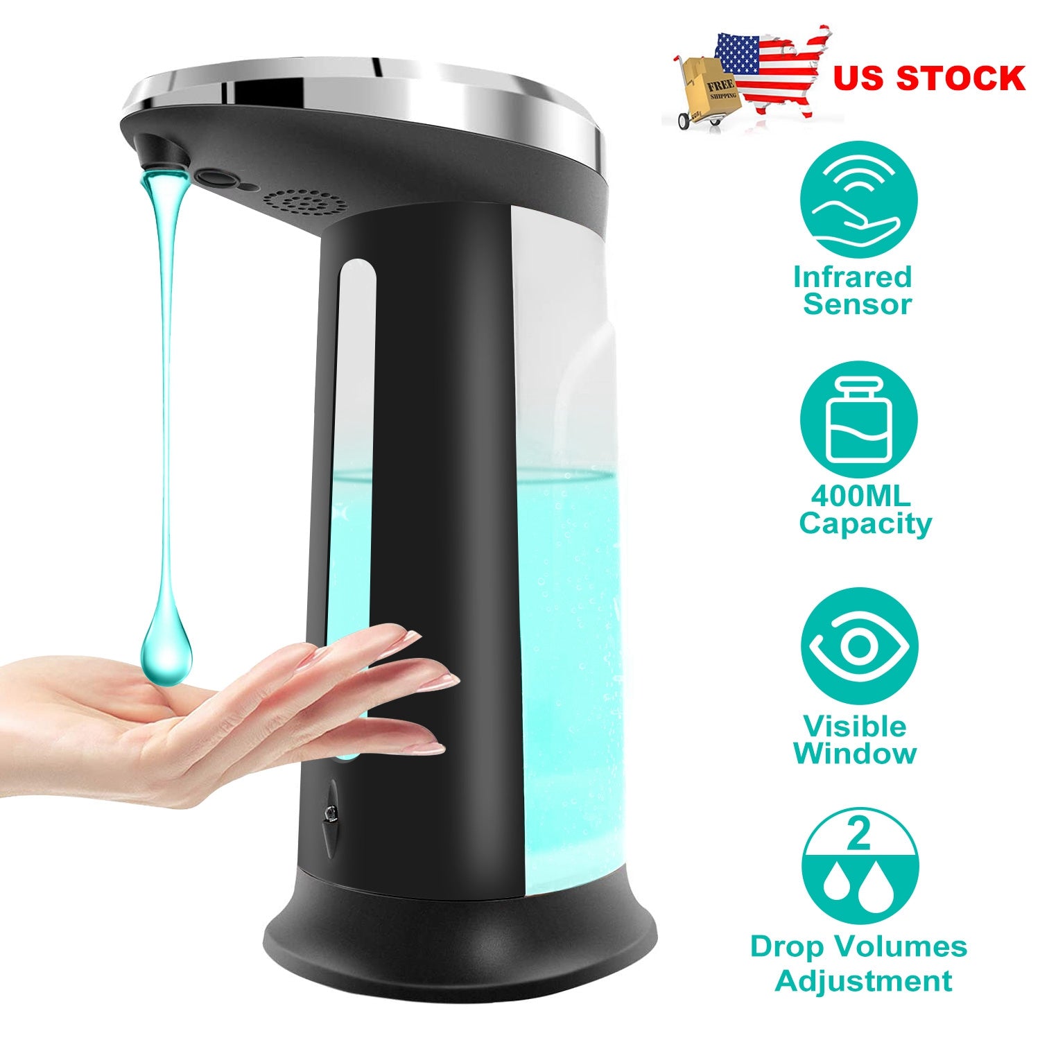 Put your hand between sensors about 0-3.94in, start working for continuously until liquid soap come out from nozzle, fast hand disinfection and prevent cross infection. Offer 2 different kinds of volume drop adjustments suit for different demands. Transparent shell enables you to see the remaining soap and timely refill. Suitable for kitchen, bathroom, barber shop, and restaurant toilet, hotel, office, public area, etc..