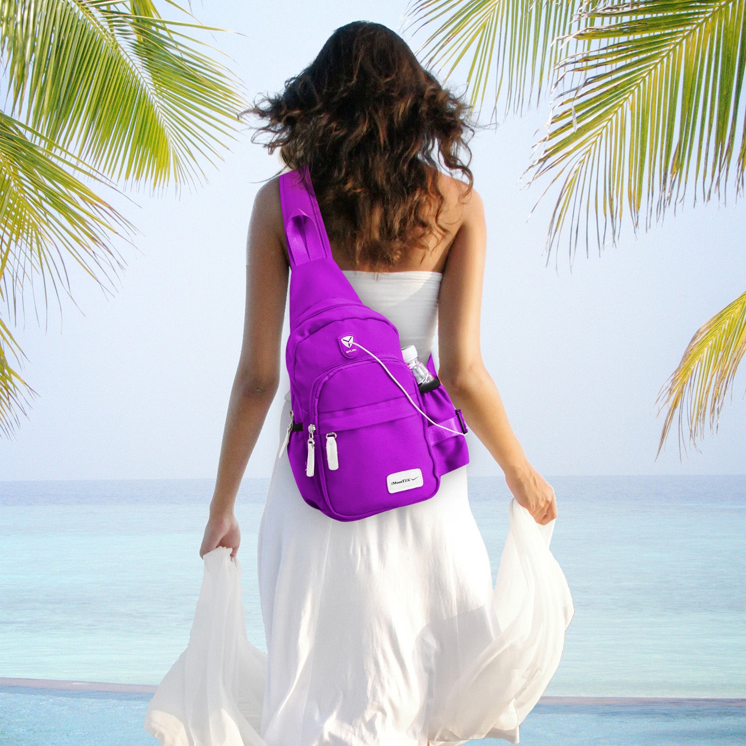 Our water-repellent and scratch-resistant nylon sling backpack which can be carried at chest, on shoulder or hand helps you pack and sort your on-the-go essentials in a lightweight bag without the bulk of a regular backpack that strains your body. It features multiple layers of pockets at front, back and side for holding items of different categories in priority to access including smartphone, tablet, wallet, keys, all kinds of paper/cards, water bottle, compact umbrella, or other items. The adjustable shoulder strap enables a perfect fit by accommodating to different people and positions.
