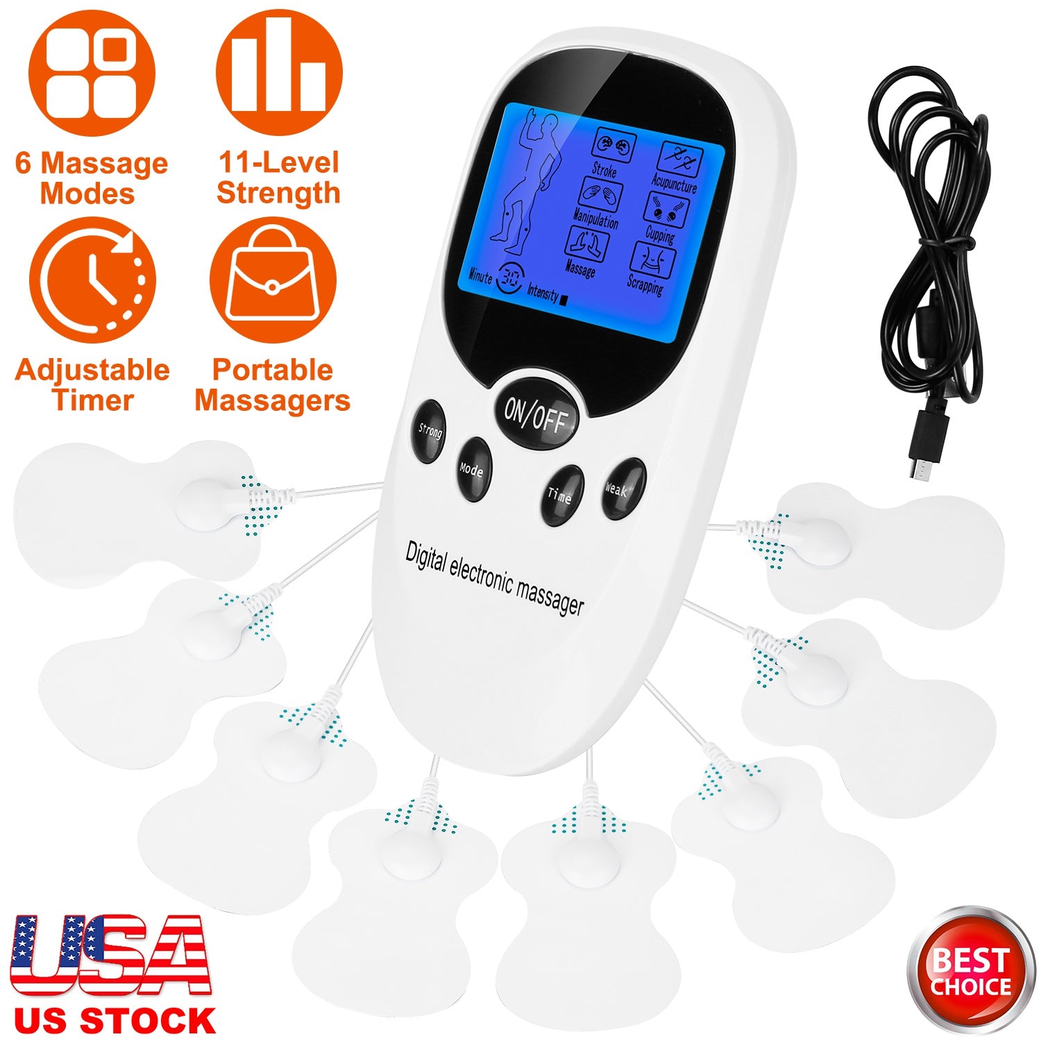 Electric Muscle Stimulator Dual Channels Pulse Massager Pain Relief Therapy Tens Device with Electrode Pads Wires