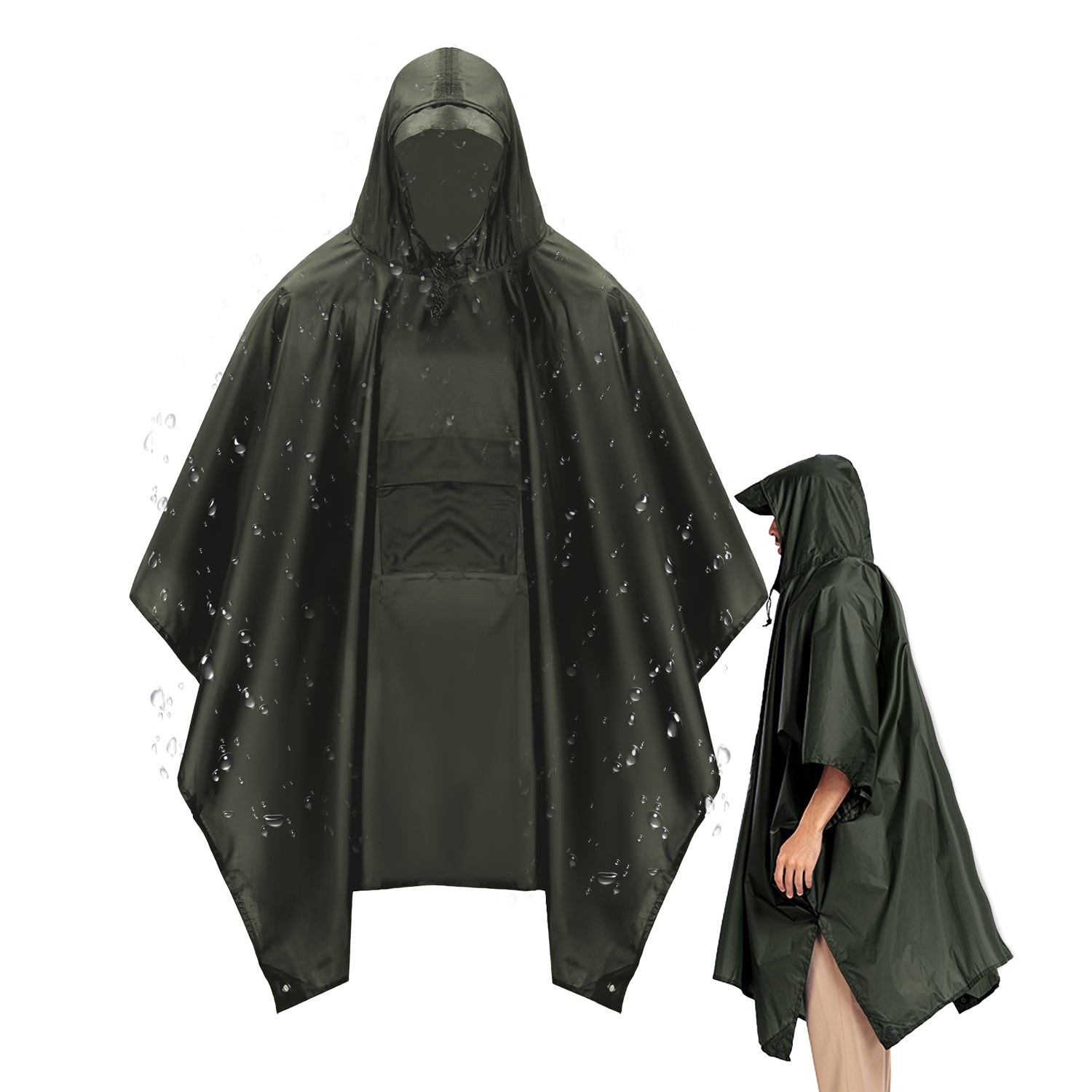 Unisex Hooded Rain Poncho With Pocket For Adult 3-in-1 Waterproof Poncho Raincoat With Hood Sleeve Brim Lightweight Portable Rain Poncho For Hiking Ca