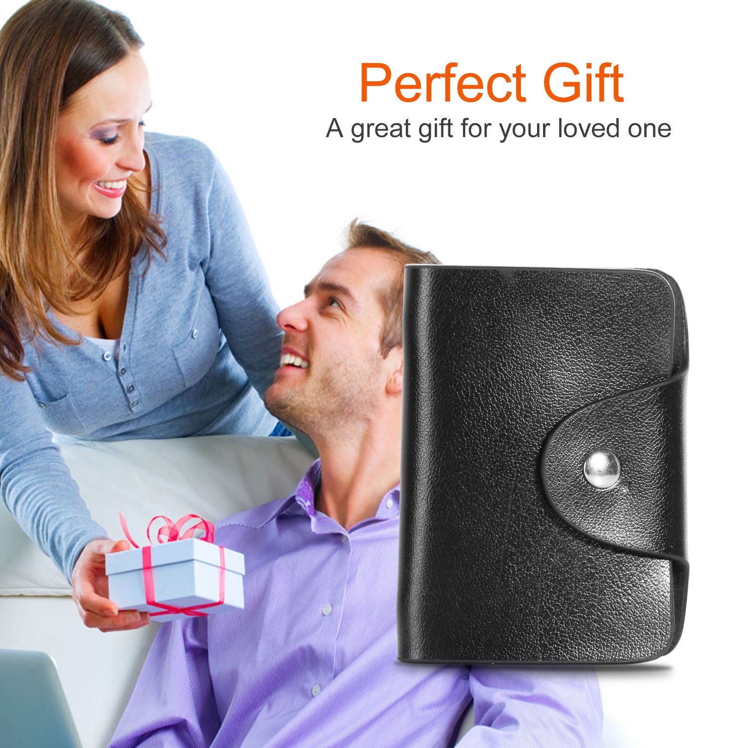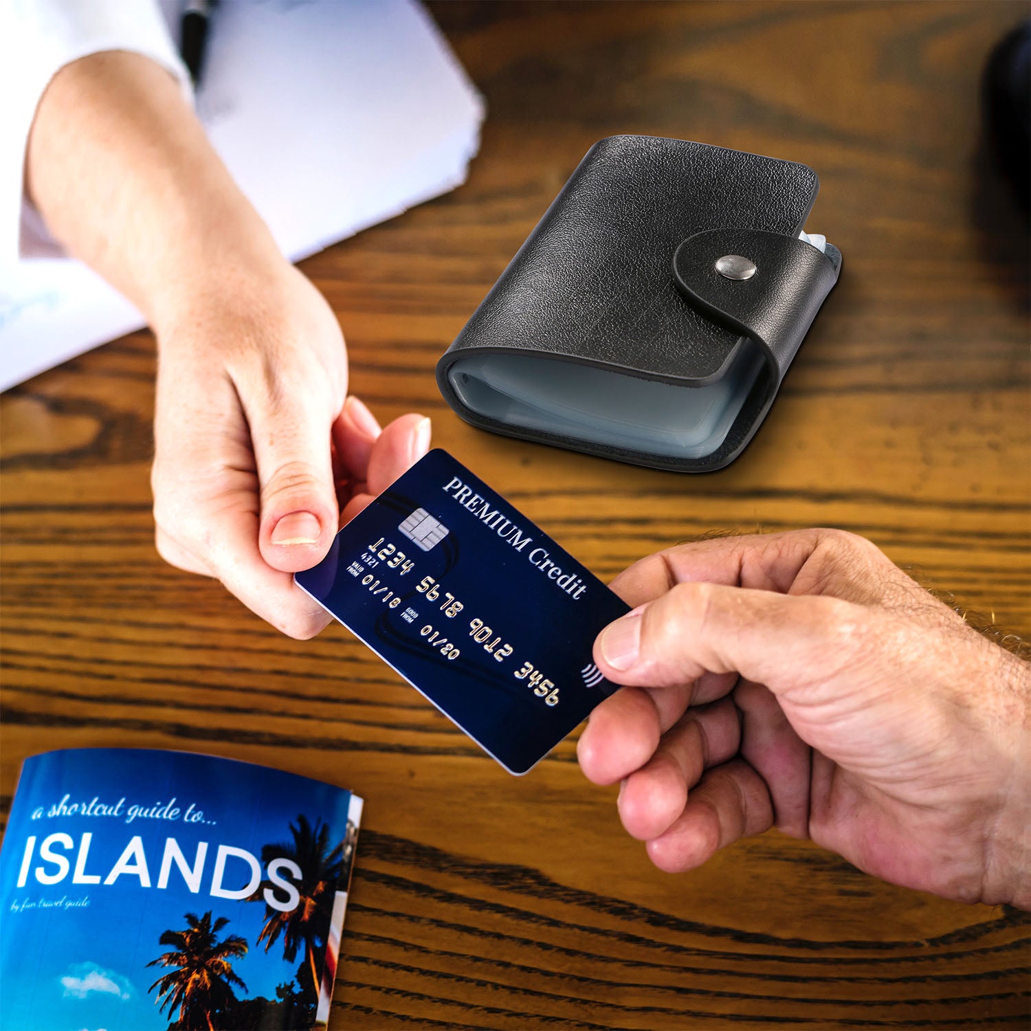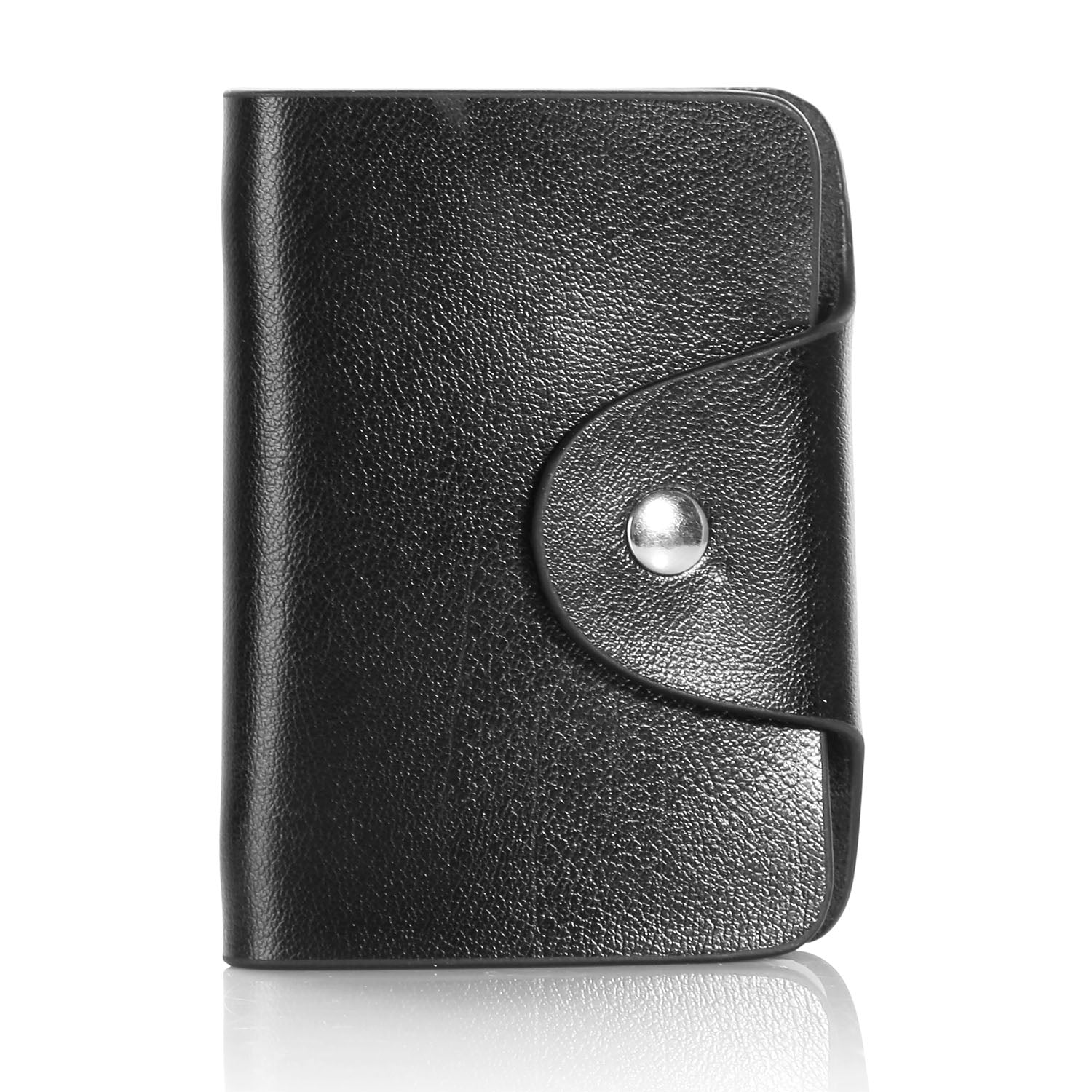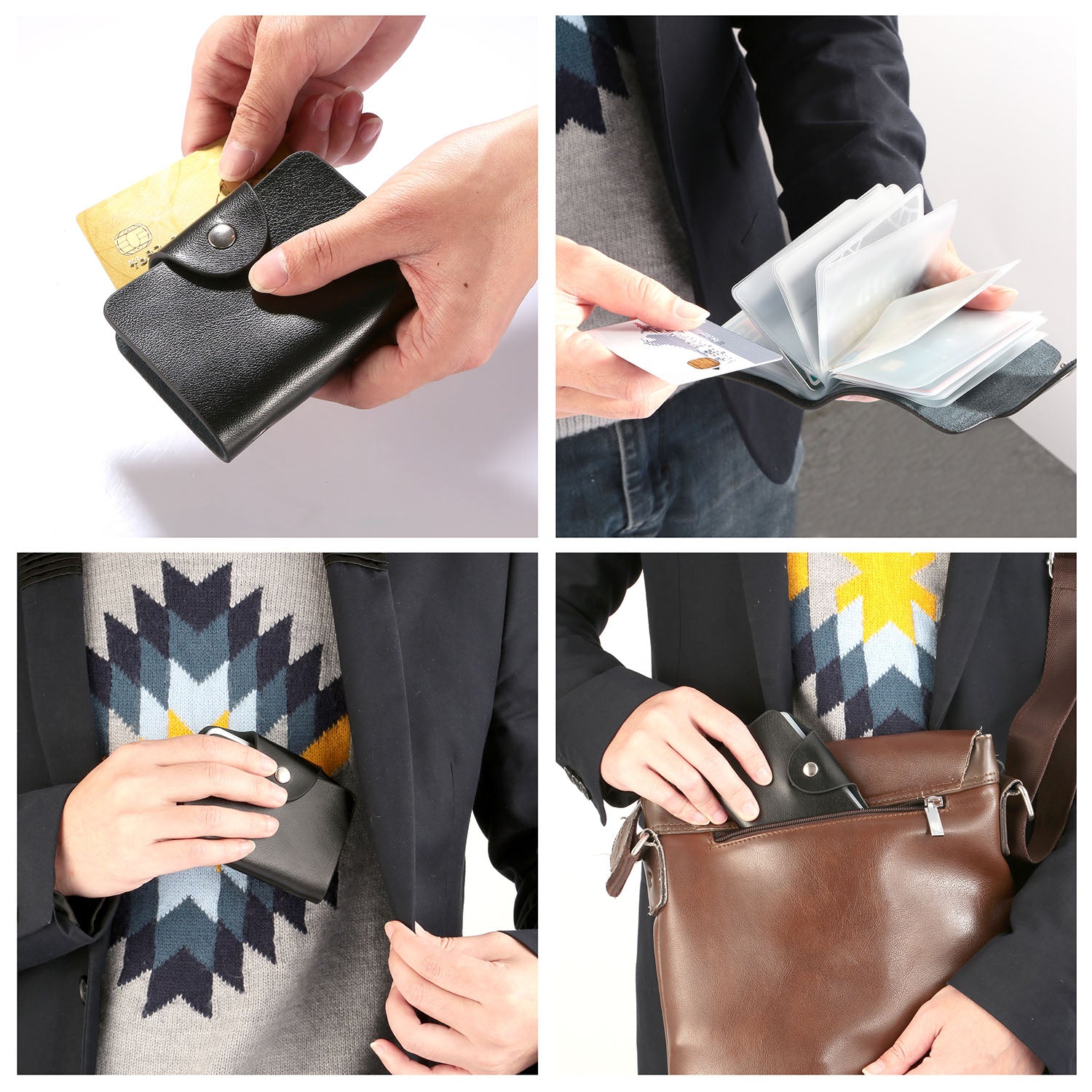 Credit Card Holder Card Organizer Pouch PU Leather Case Snap Closure with 26Pcs Card Slots
