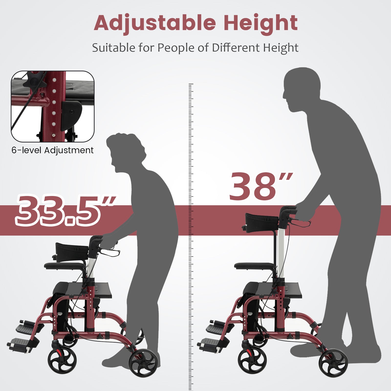 Folding Rollator Walker with Seat and Wheels Supports up to 300 lbs-Red