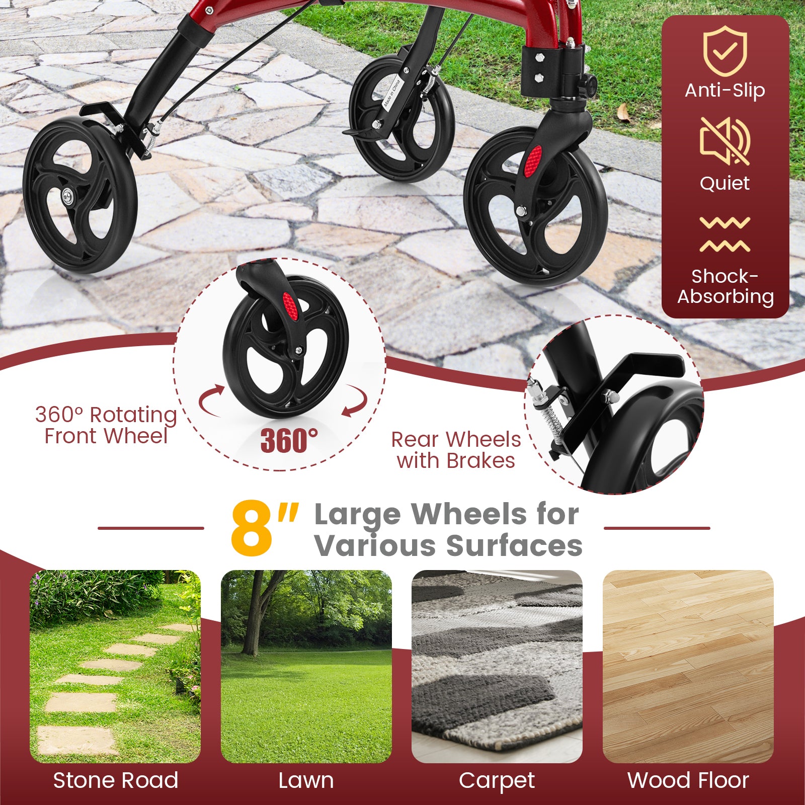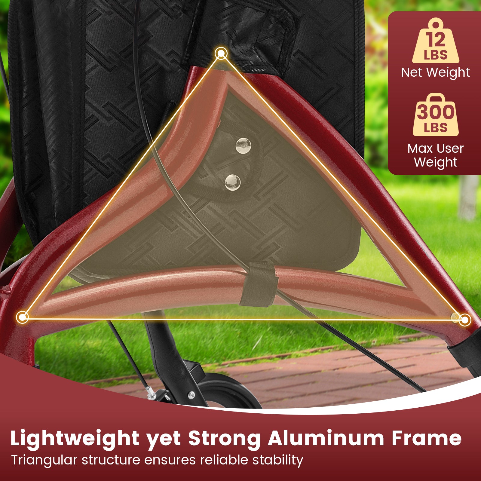 Foldable Rollator Walker with Lightweight Aluminum Frame-Red
