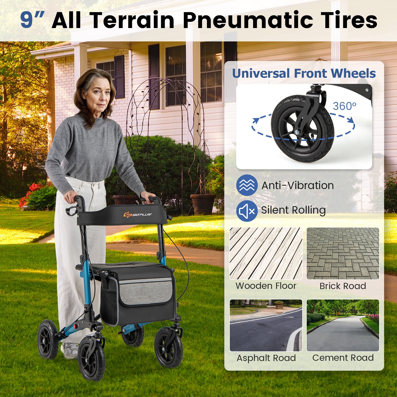 Folding Rollator Walker for Seniors with Seat for All Terrain-Navy