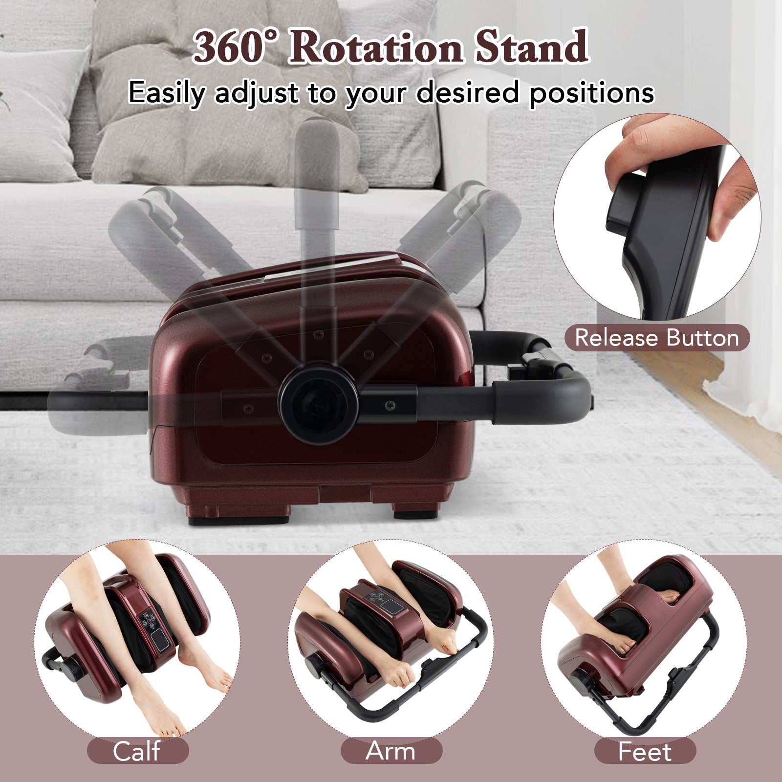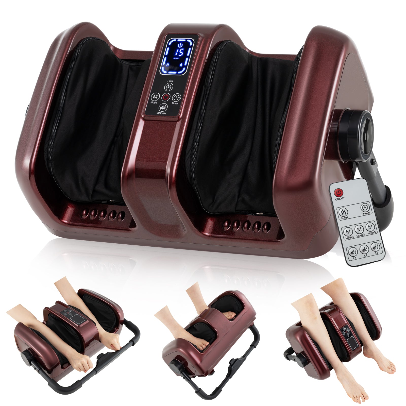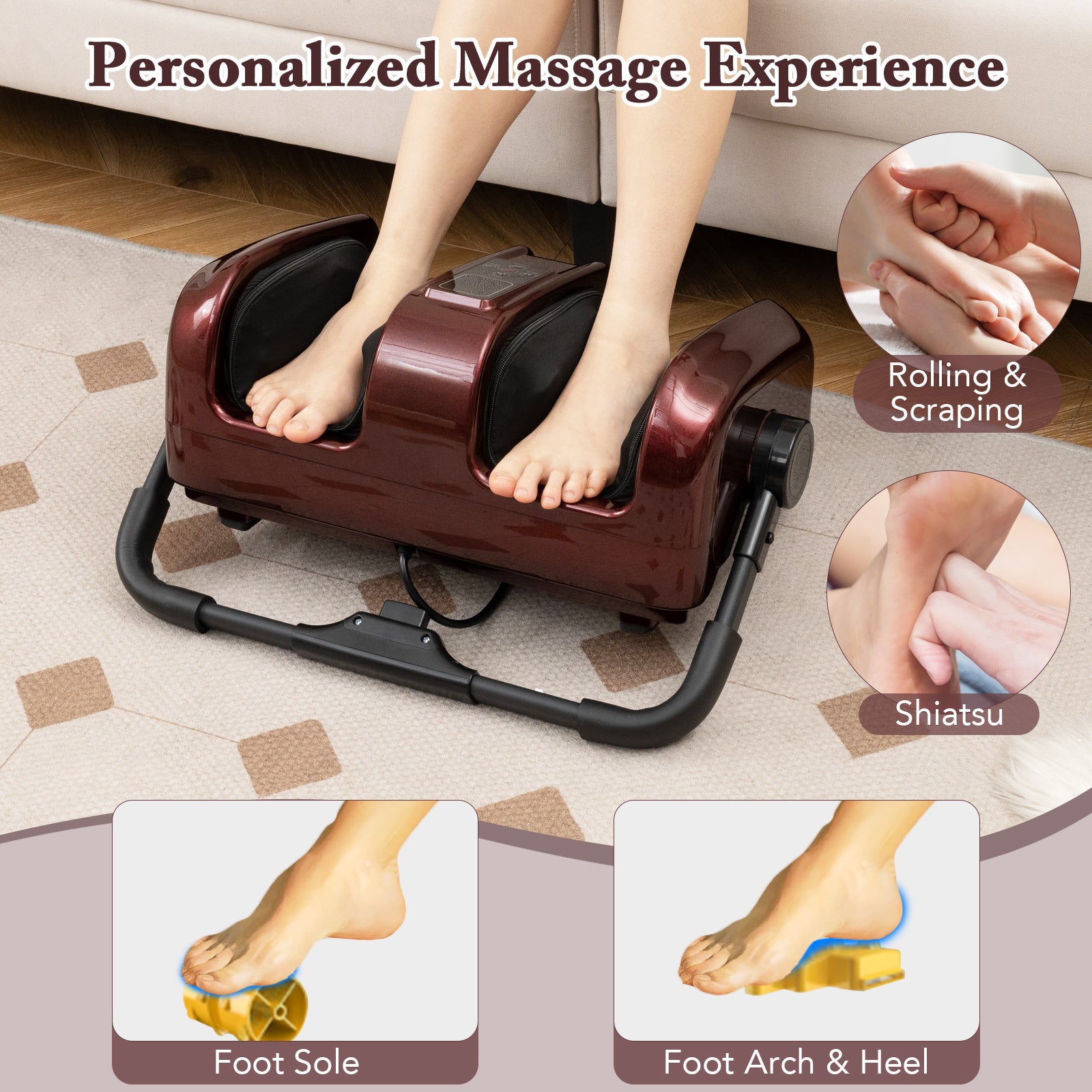Foot and Calf Massager with Heat Shiatsu Deep Kneading Rolling Smart Electric Leg Massager-Red