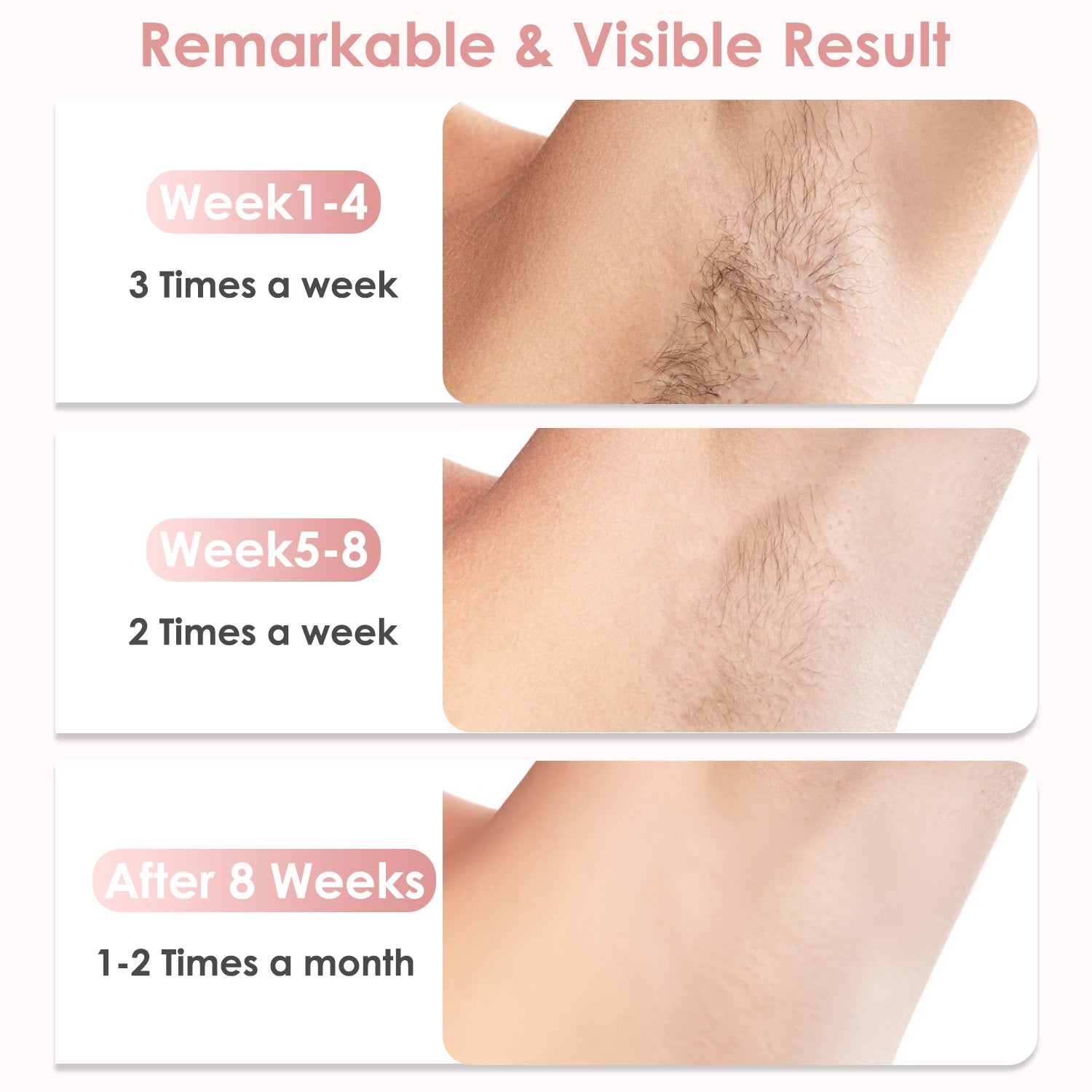 - Smooth, hair-free skin visible after approximately 9 weeks of consistent use.