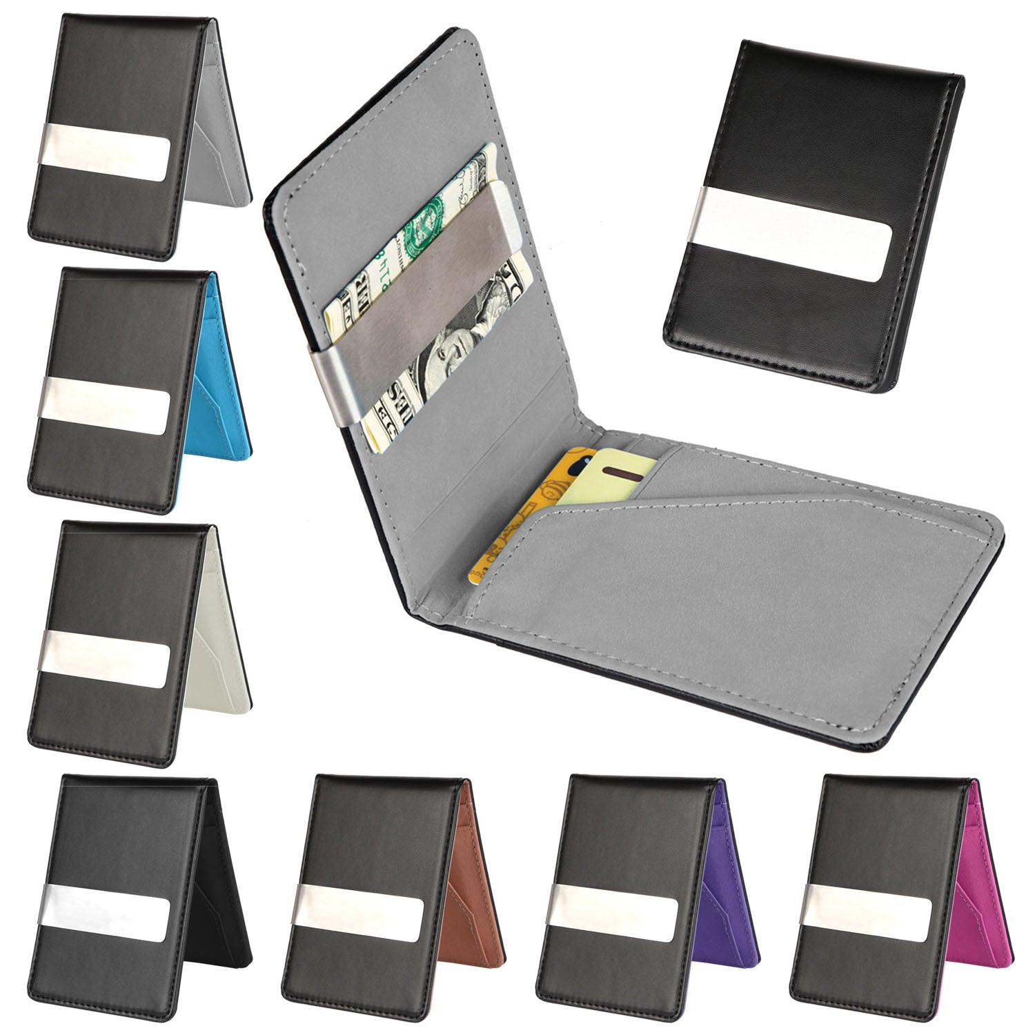 Unisex PU Leather Wallet RFID Blocking Slim Bifold Credit Card Holder with Money Clip