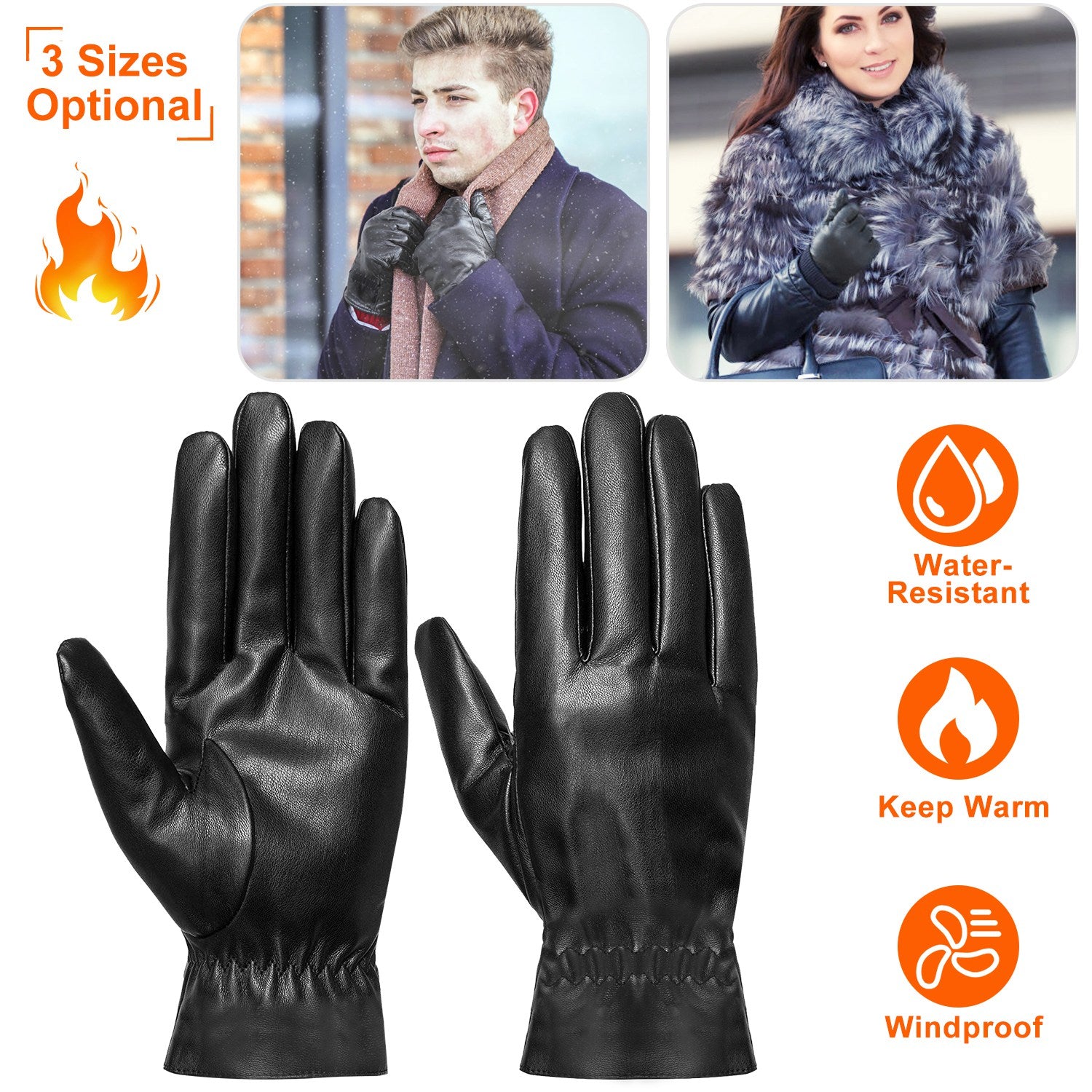 Afraid of hands being frozen and stiff due to cold weather during winter? Our winter gloves is made of quality PU leather and warm napped fabric, which features windproof to provide softness of touch, warm and lasting comfort and keep your hands warm while driving, running, walking dogs, etc.; Features waterproof that can resist snow, rain, water in some extent, no worry about damp and cold weather. 3 sizes for option that is suitable for both man and woman. Let’s take one for her/him as a sweet gift to protect their hands from cold weather whiling having outdoor activities.