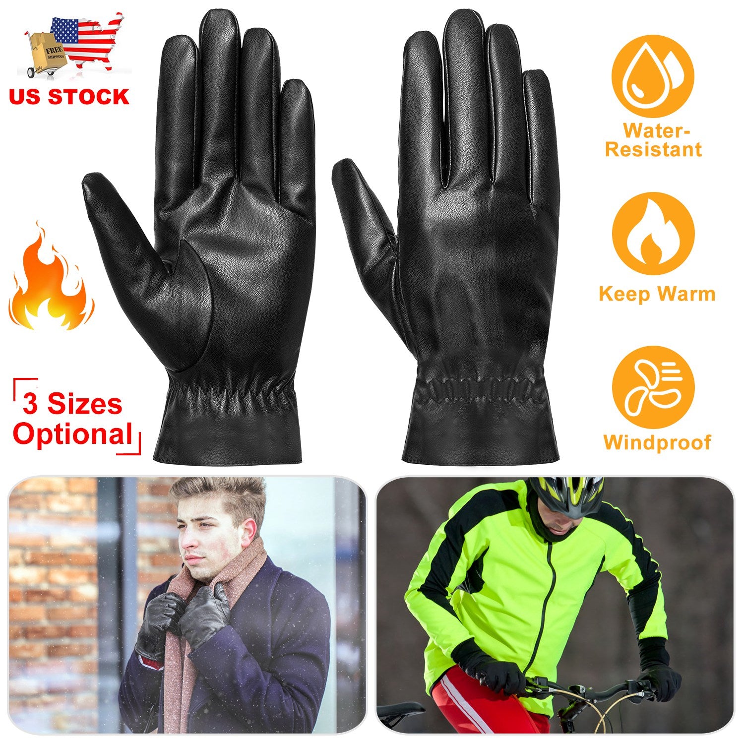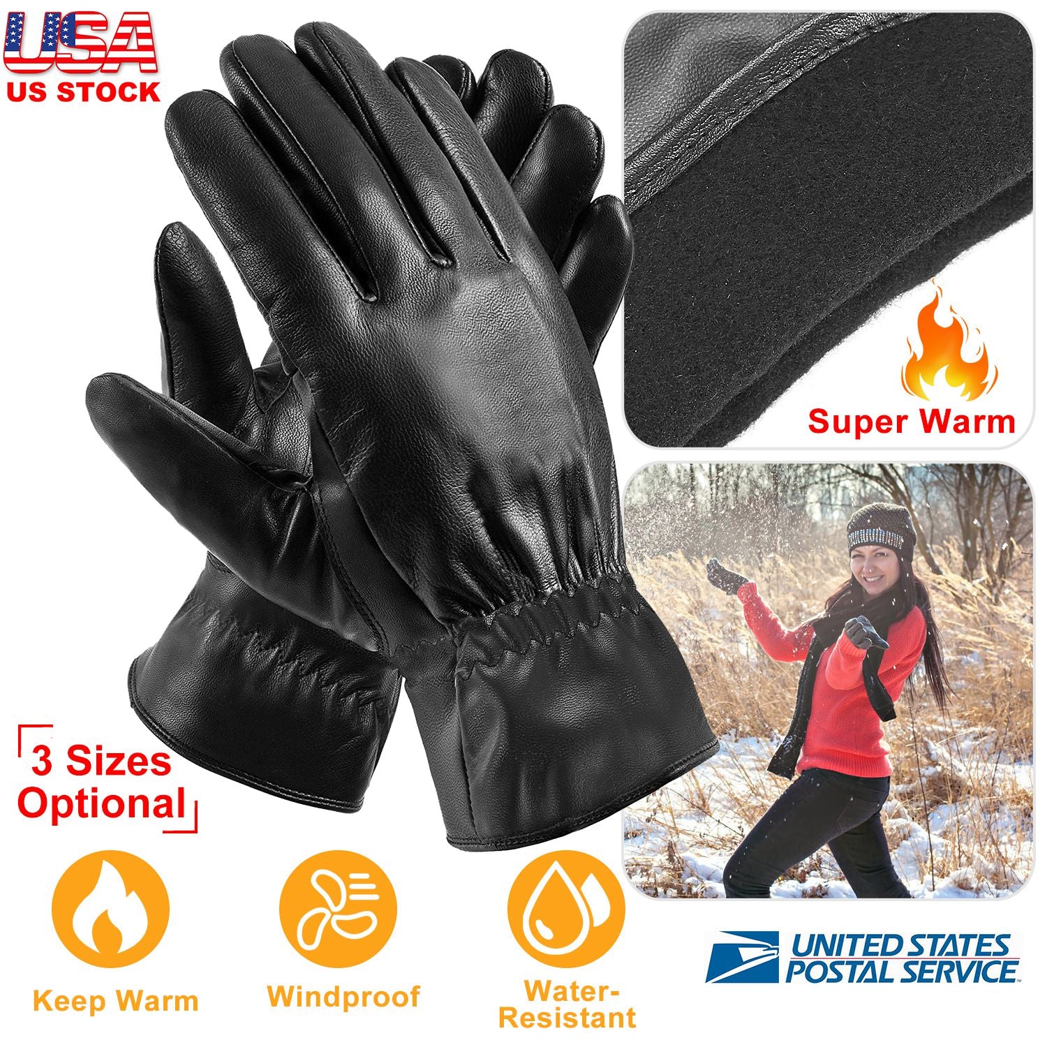 Afraid of hands being frozen and stiff due to cold weather during winter? Our winter gloves is made of quality PU leather and warm napped fabric, which features windproof to provide softness of touch, warm and lasting comfort and keep your hands warm while driving, running, walking dogs, etc.; Features waterproof that can resist snow, rain, water in some extent, no worry about damp and cold weather. 3 sizes for option that is suitable for both man and woman. Let’s take one for her/him as a sweet gift to protect their hands from cold weather whiling having outdoor activities.