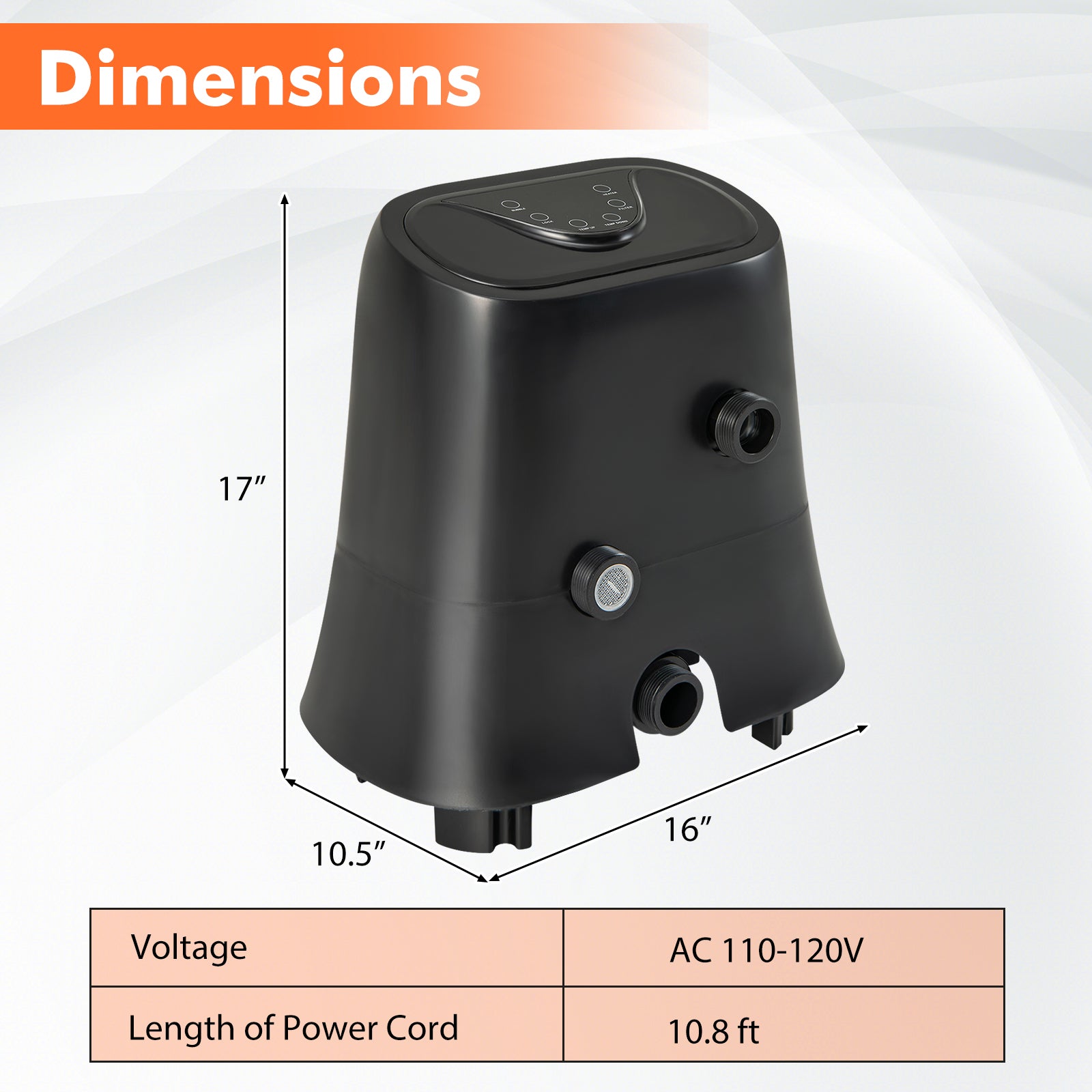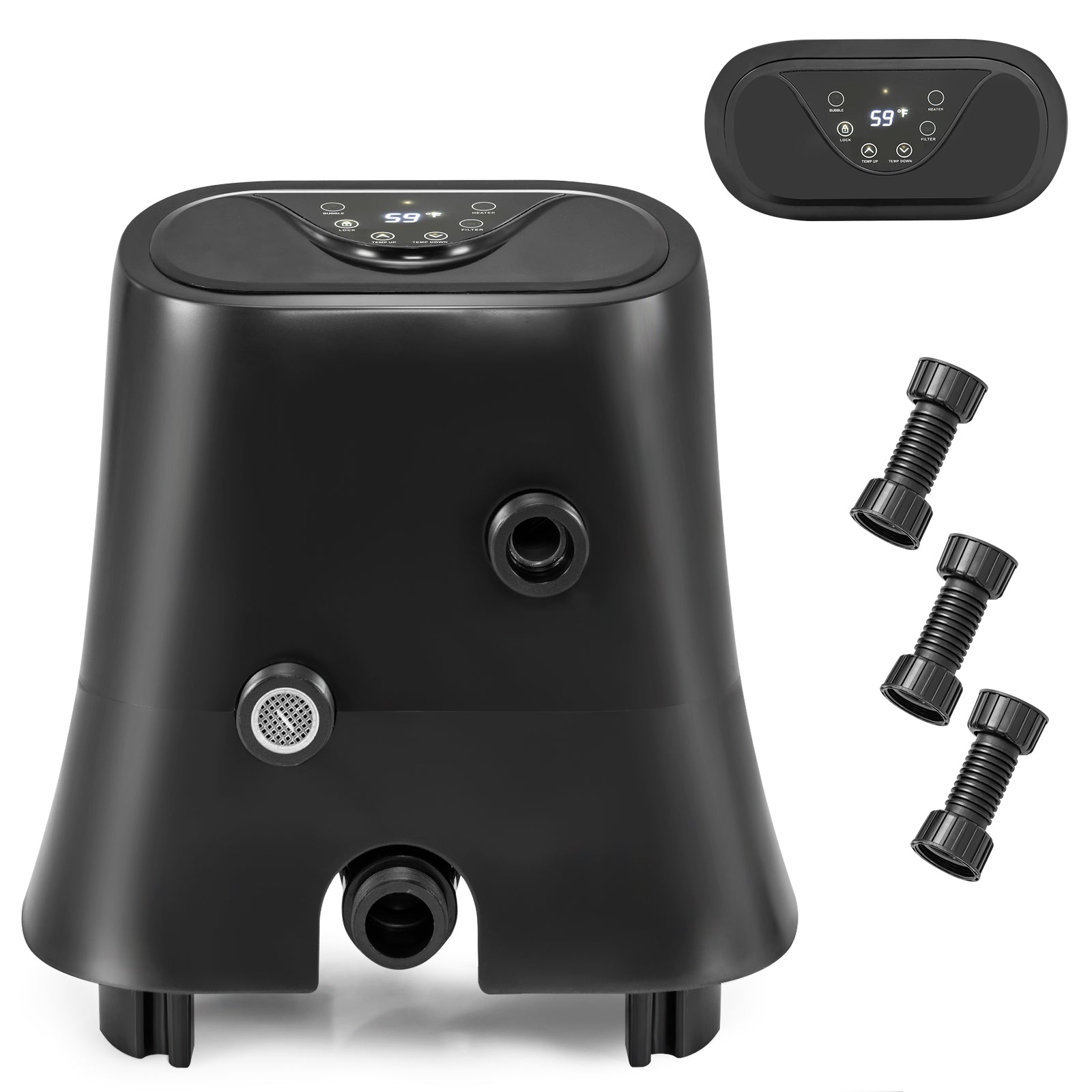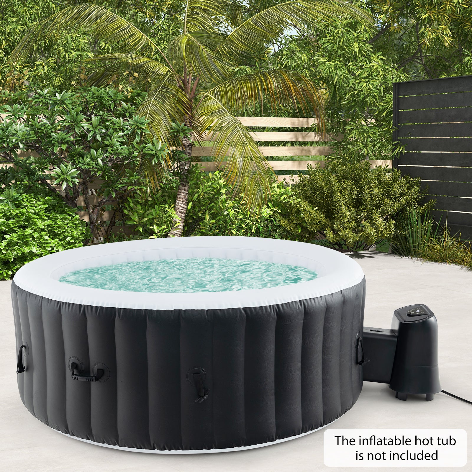 ● Note: The Heater Pump is not suitable for other brands of inflatable hot tubs. ● PTC heating technology for efficient heating ● Thermostatic design for long-time relaxation ● Has an energy-saving 20-minute auto-off bubble mode ● Provides a filter replacement reminder at 168 hours ● Smart touch panel features an LED display screen ● Easy to set frozen protection and auto or manual child lock ● IPX5 and GFCI plug make it suitable for outdoor use ● Features ETL certification overheat and overload protection ● Bubbling and heating cannot be used together ● Only requires a simple attachment to your inflatable hot tub ● The inflatable hot tub is not included