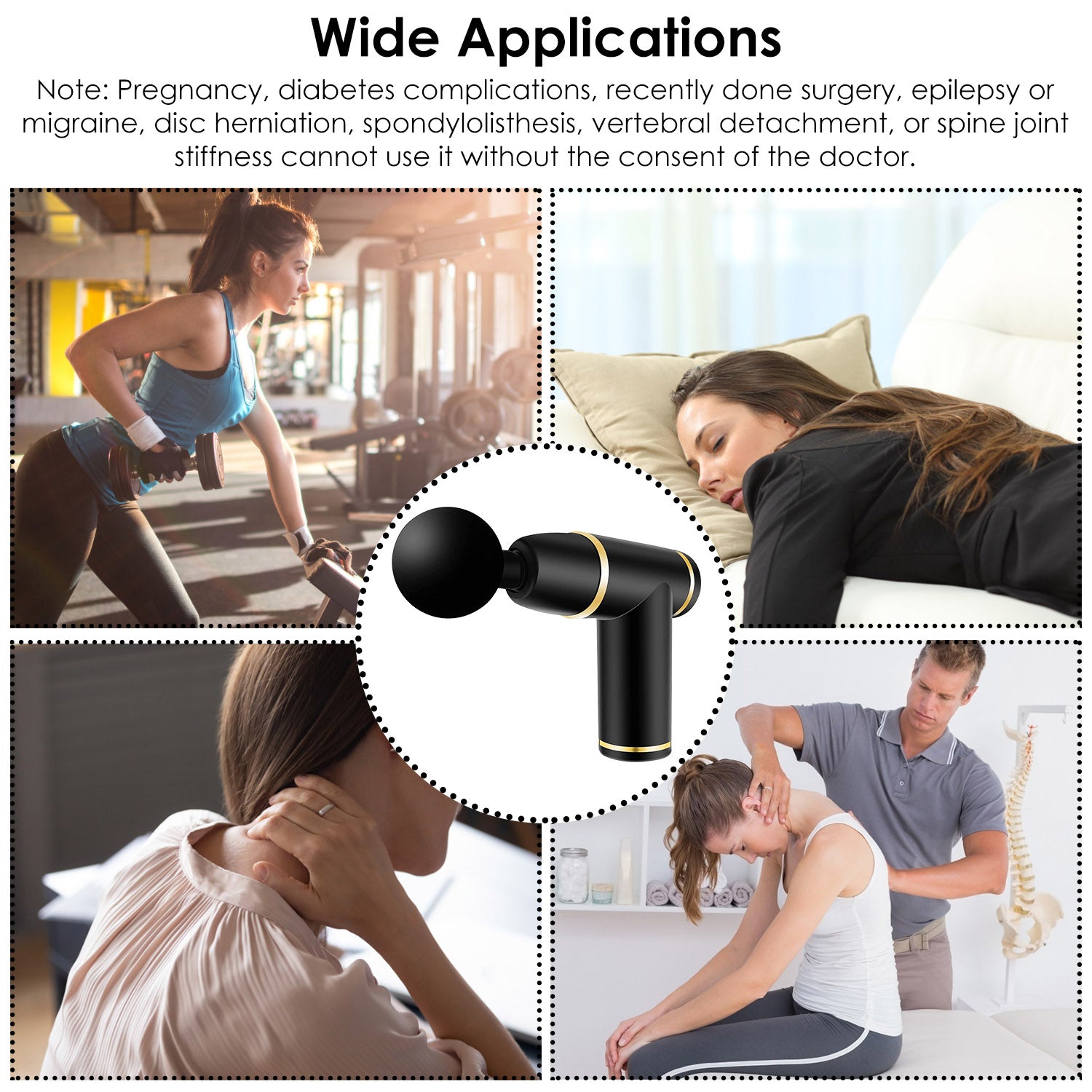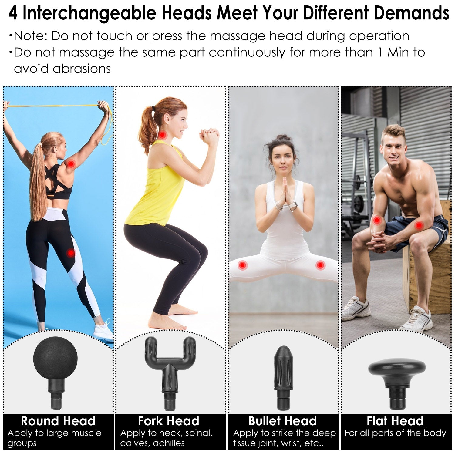 - Avoid using the massage gun near sensitive areas (neck, chest, abdomen) or joints (knees).