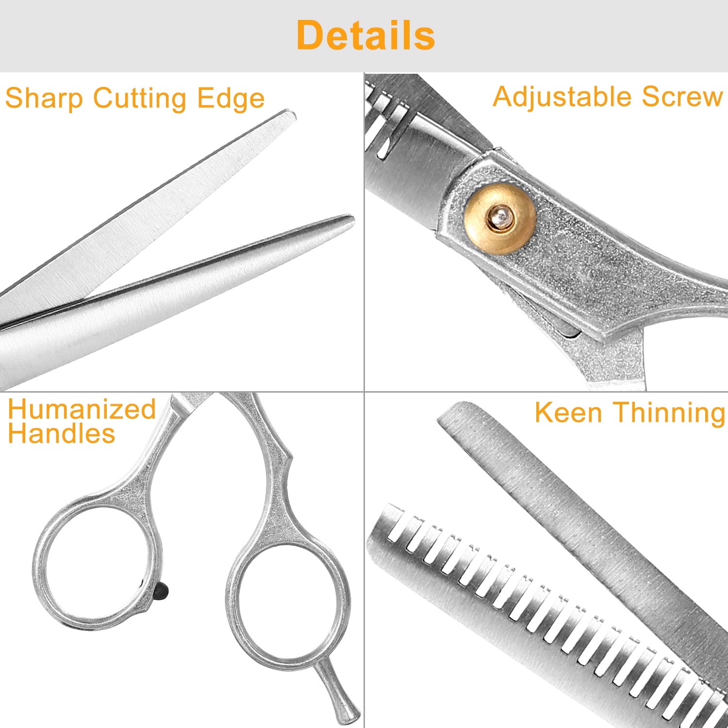 - Premium Quality with Sharp Blades: Made from stainless steel, featuring sharp cutting blades and thinning shears with 22 teeth for smooth, tug-free cuts.