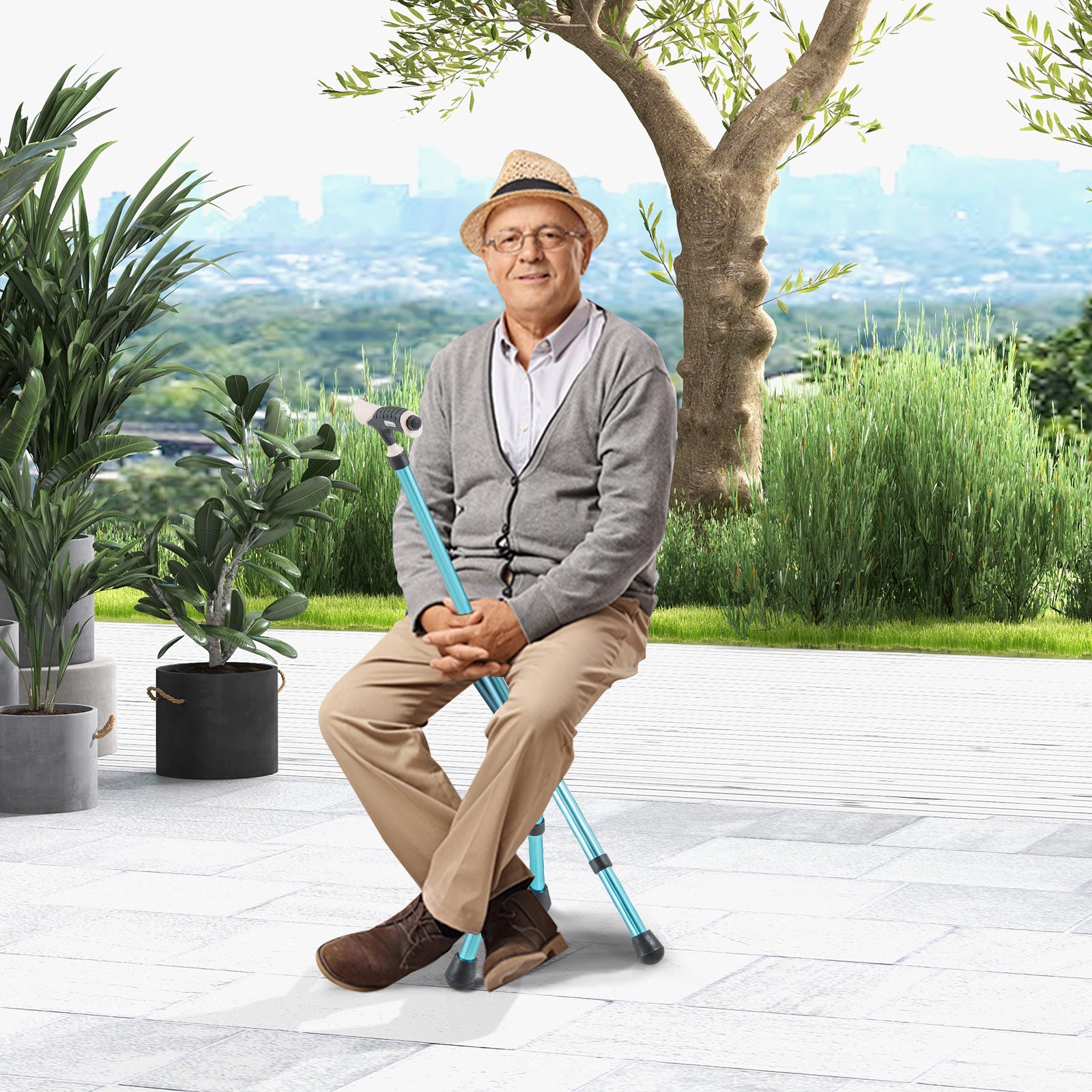 ● Including 1 x Cane seat 1 x Cushion cover 3 x Foot pads and 1 x Instruction● Made of high-quality aluminum alloy lightweight but heavy-duty● Not easy to roll over with a stable triangular structure● Equipped with anti-skid and wear-resistant foot pads not easy to scratch the floor● Ergonomic handle provides a healthy and comfortable grip● Seat board with 215 massage points can effectively massage human acupoints● Built-in LED light ensures safe walking at dark night● 5 adjustable heights for people of different heights● Ideal for waiting in line traveling or resting after going for a walk● Easy to store and carry with a foldable design● Easy to use with no assembly required IMPORTANT NOTE: Please use 2 x AA carbon-zinc batteries do not use alkaline batteries rechargeable batteries or high-flow batteries.