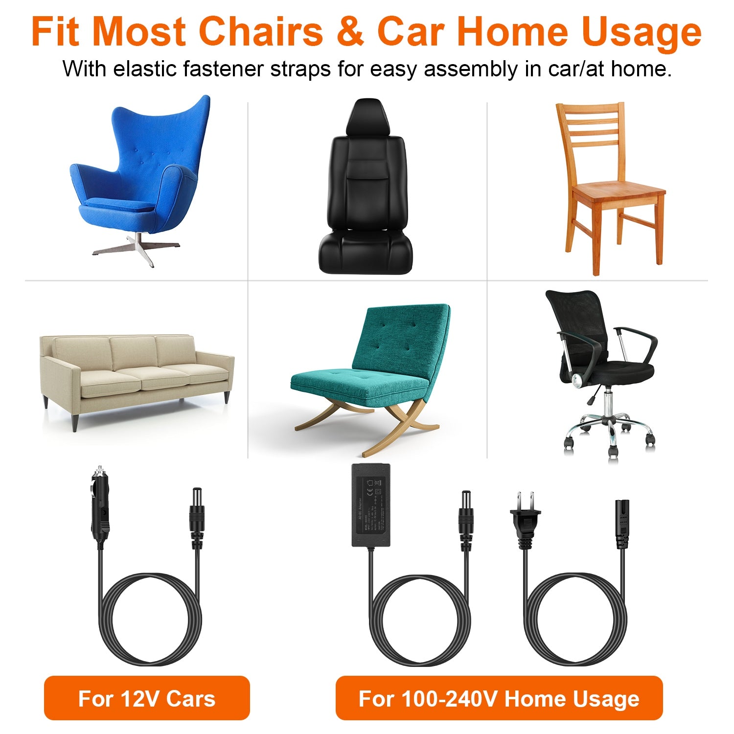 - Elastic fastener straps ensure a secure fit on car seats, sofas, recliners, or home chairs