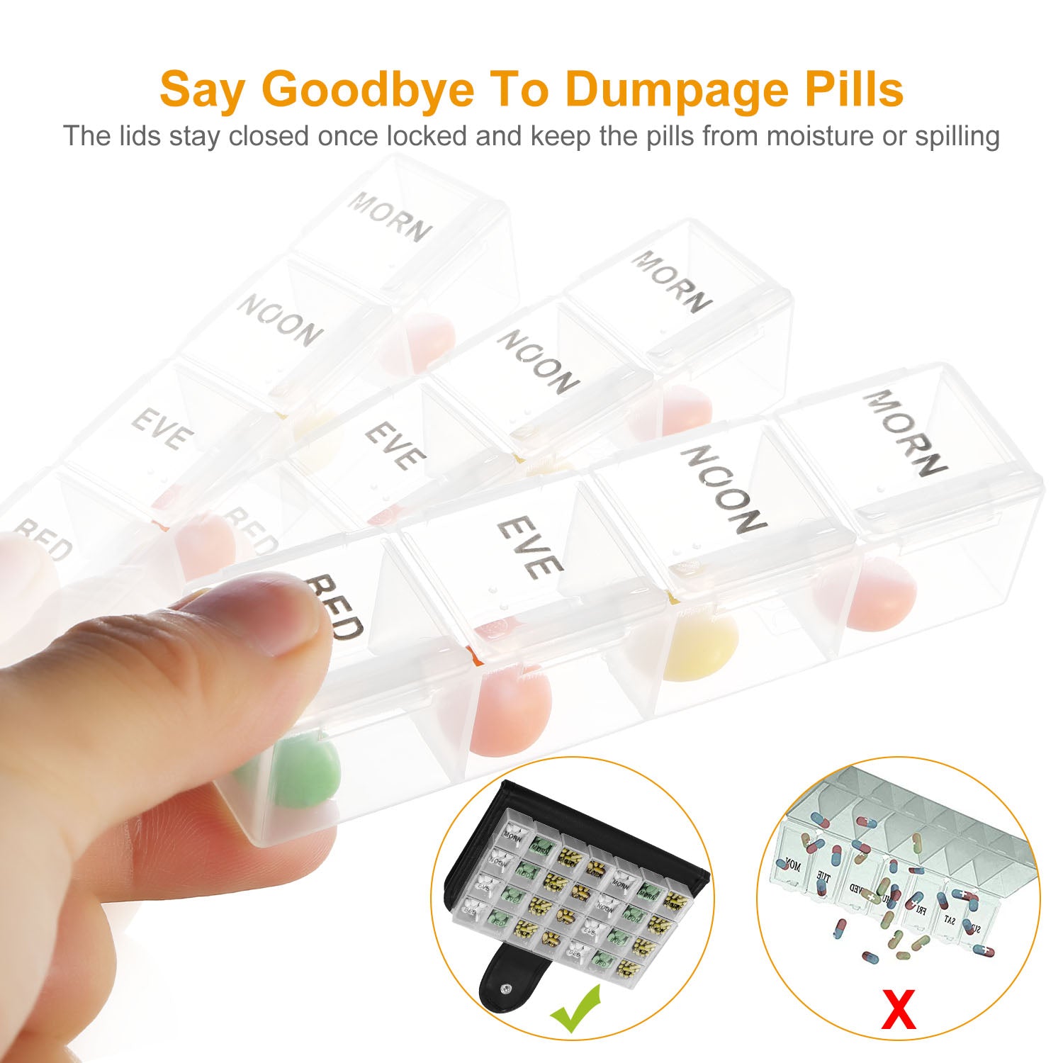 Help Prevent Missed Doses: Clear lids for easy visibility of your medications, ensuring you never forget to take your pills.