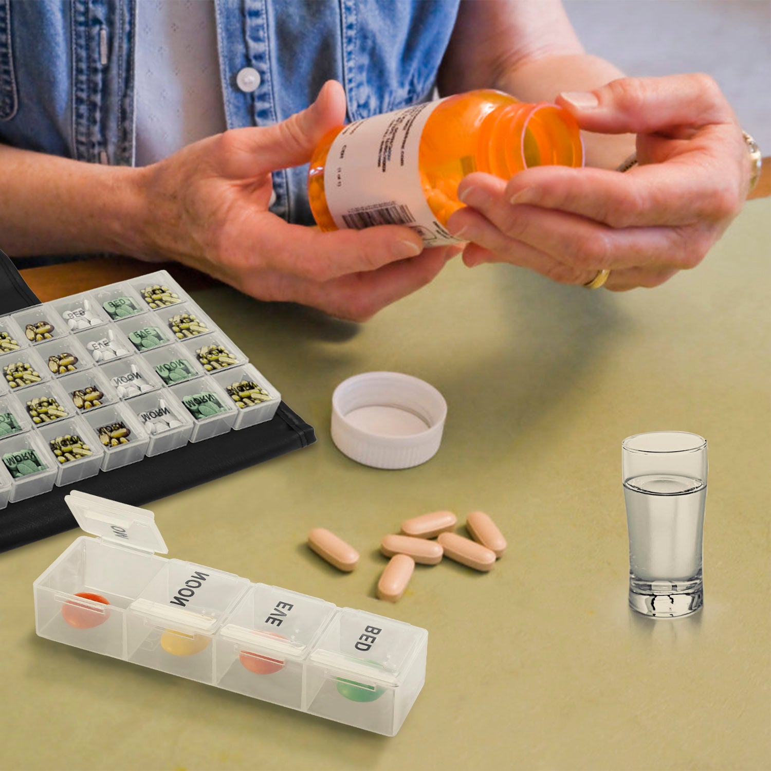 Ultra Convenient: 28 separate compartments, storing 7 days of pills, ideal for travel, business trips, or daily use.
