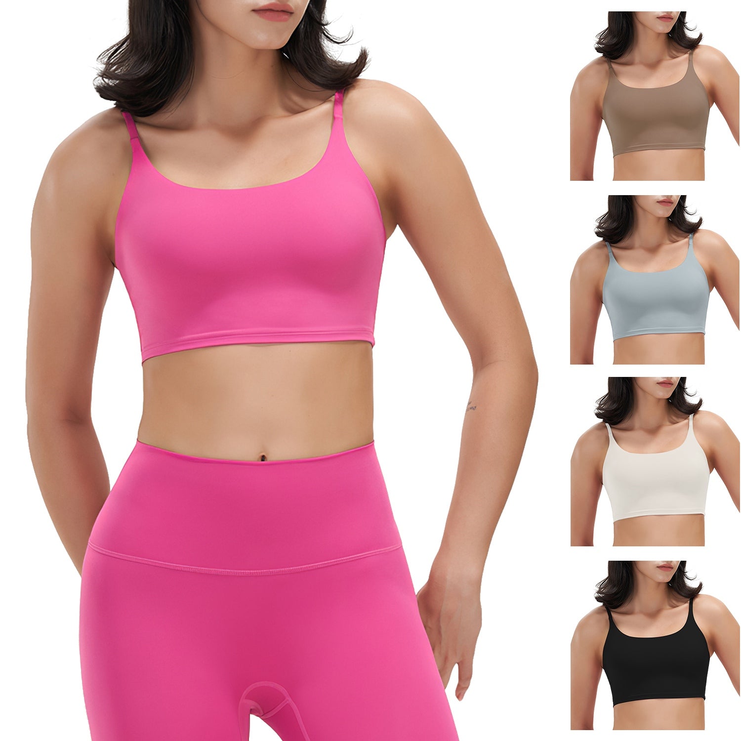 Women Strap Sport Bras Padded Strappy Crop Square Neck Low Impact Bras Sexy Fitness Tank Tops with Removable Pads Flat Straps for Gym Yoga Workout Run