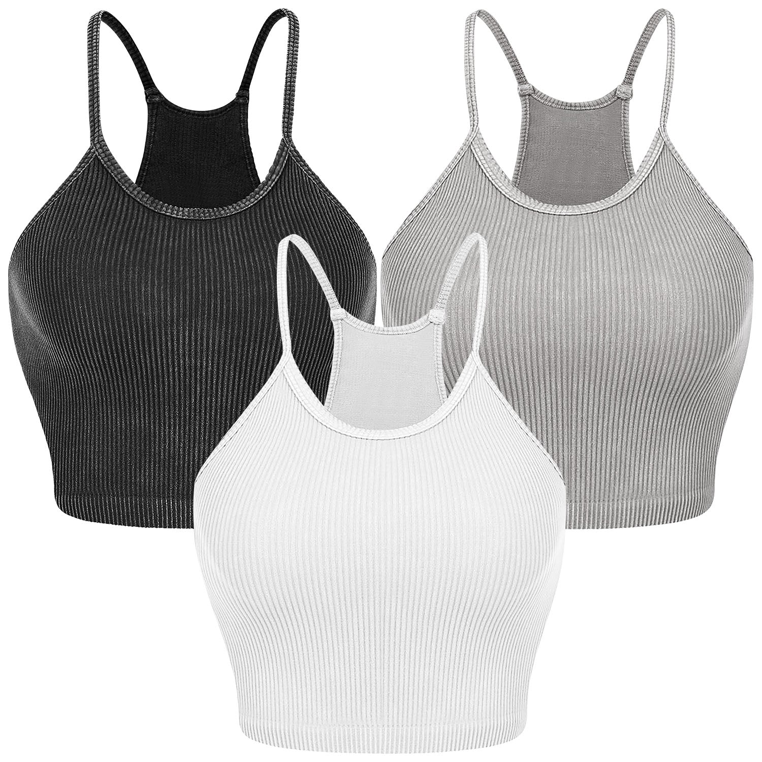3 Pack Women Crop Basic Tank Top Ribbed Knit Sleeveless Round Neck 9 Color Machine Wash Summer Crop S to XL