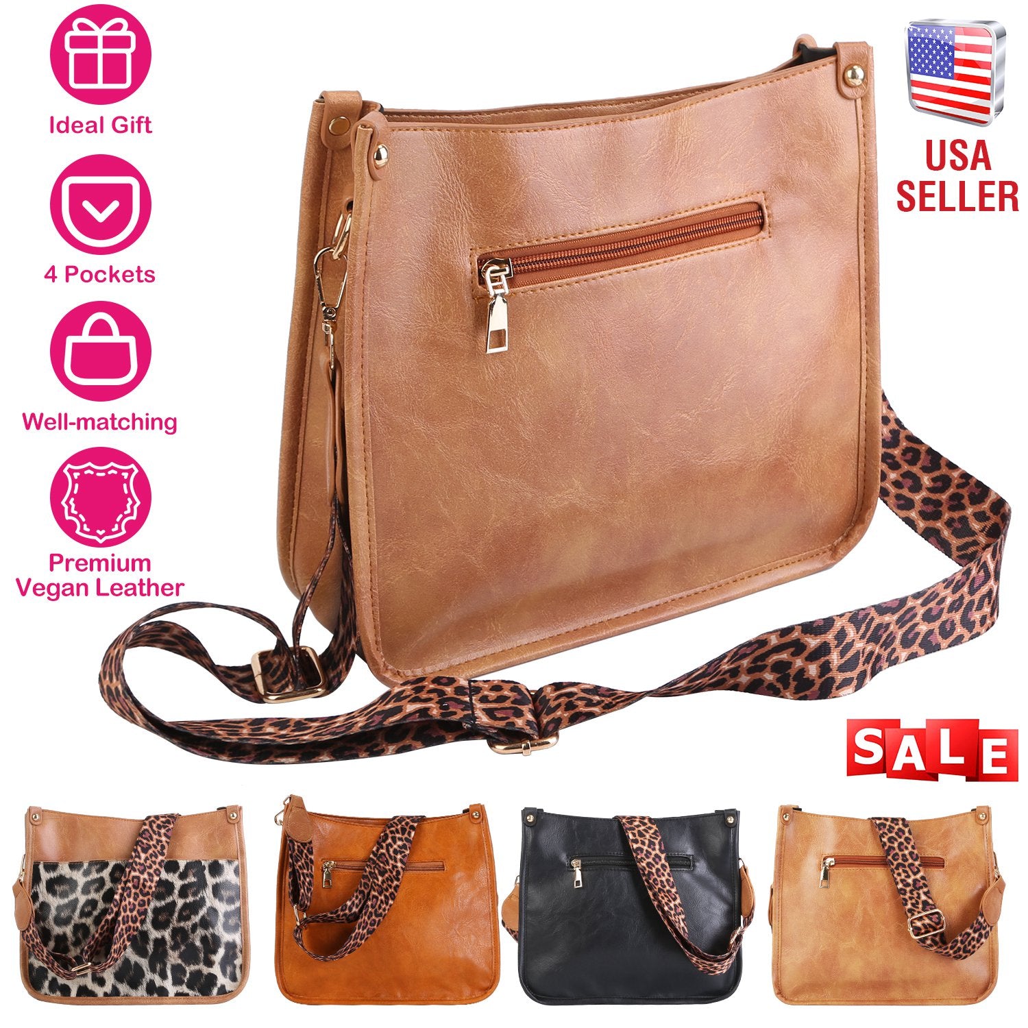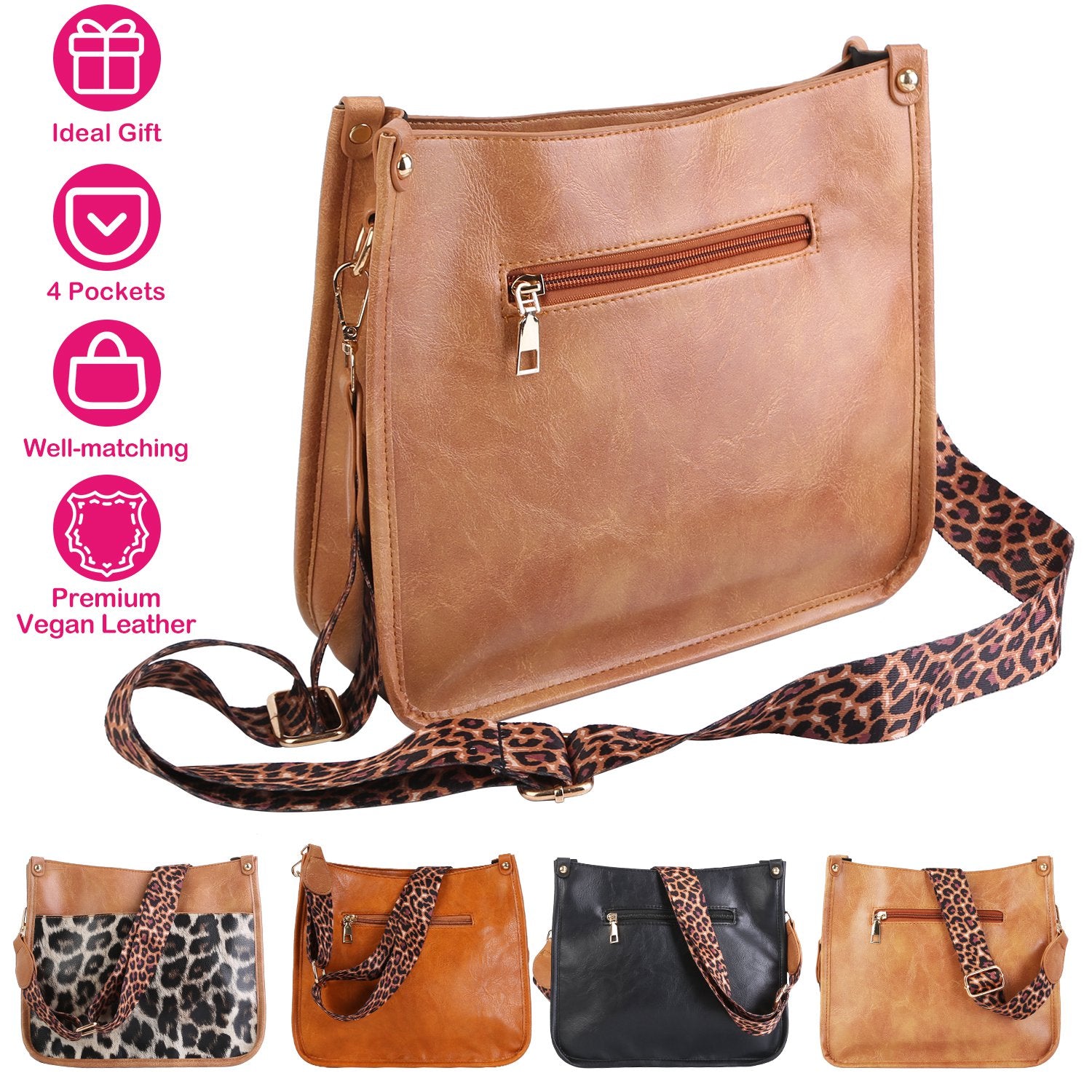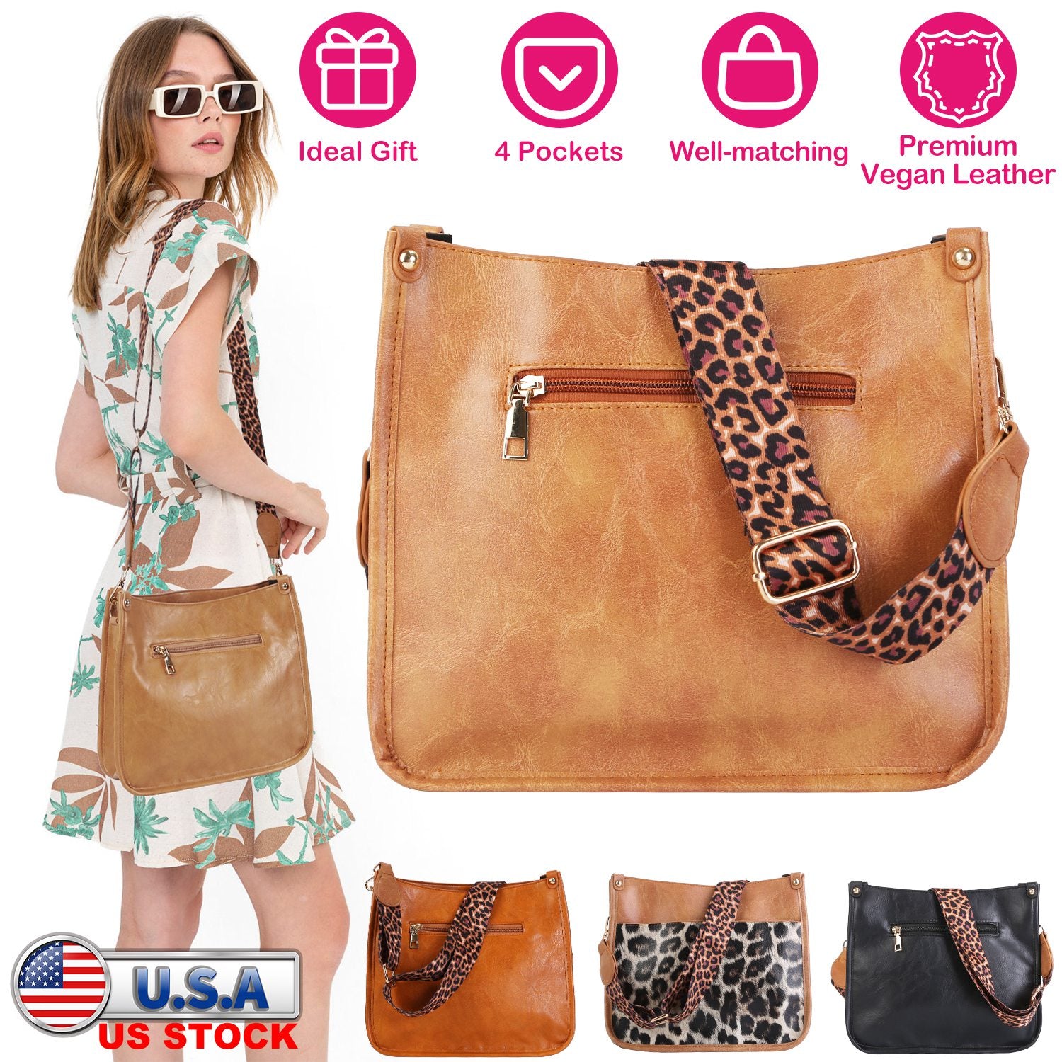 Women Fashion Leather Crossbody Bag Shoulder Bag Casual Handbag with Flexible Wearing Styles Adjustable Guitar Strap