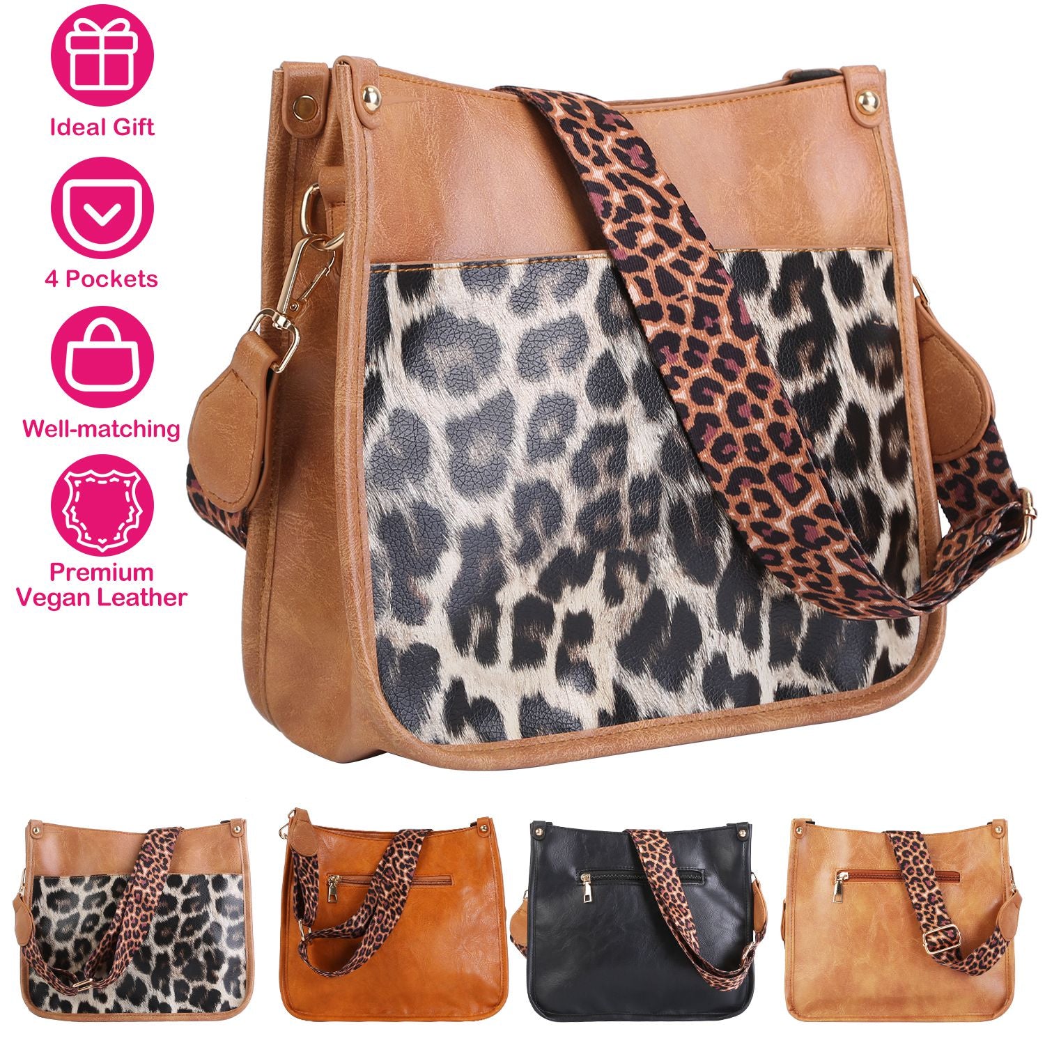 Women Fashion Leather Crossbody Bag Shoulder Bag Casual Handbag with Flexible Wearing Styles Adjustable Guitar Strap